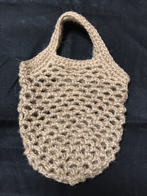 シンプルなナチュラル色で編んだので、中に入れる巾着の柄で色々楽しめそうですね!