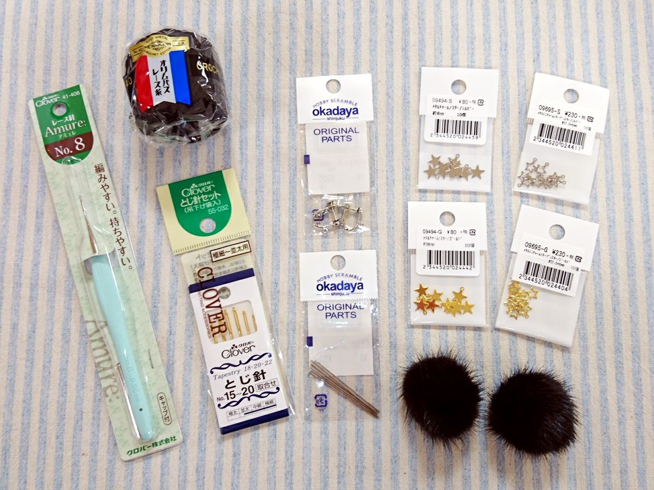 レース針だけで作れる!ミンクポンポンとレース糸のイヤリング♪