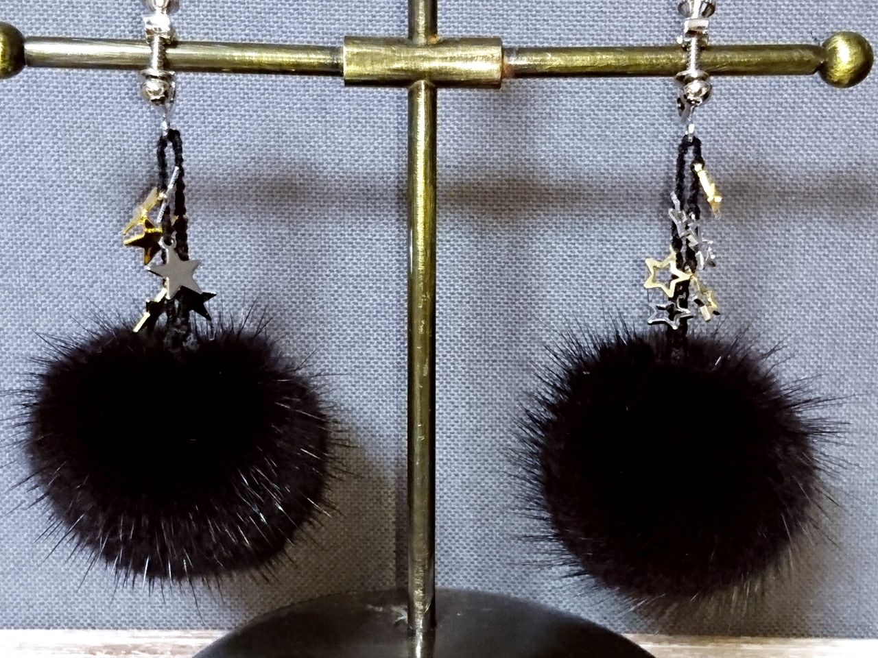 ミンクポンポンの黒を使ったイヤリングの作り方をご紹介致します!