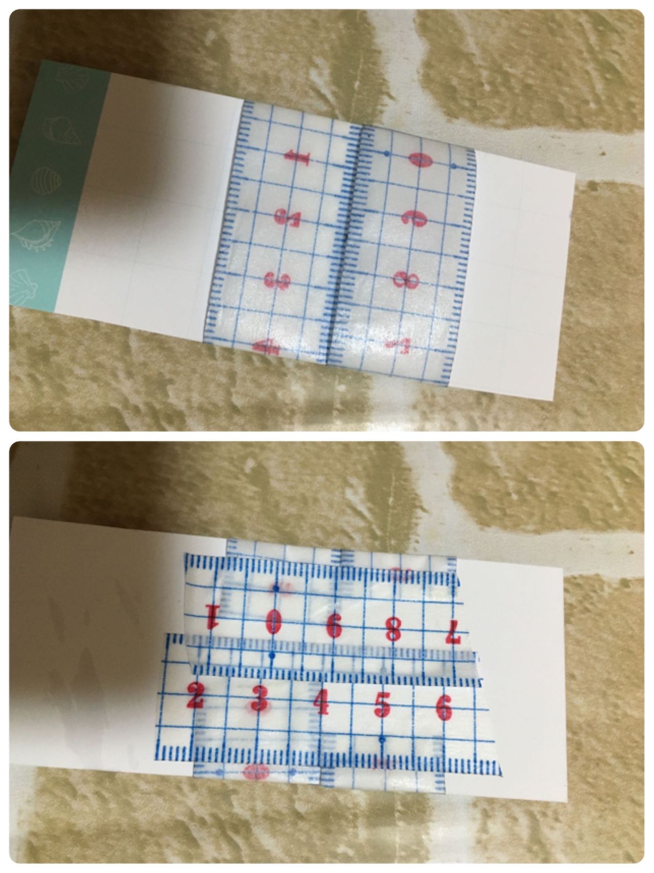 (上が粘着面で作品を付ける面…以下の作業写真では養生テープで作ったもので製作しております。)