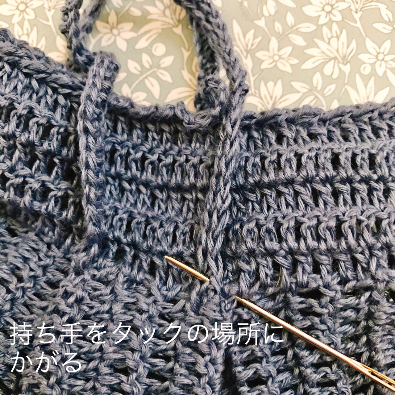 ⑧持ち手を編みます