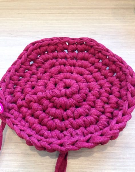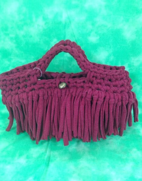 大人気のリサイクルヤーンで、フリンジ付きミニマルシェバックを編んでみました!