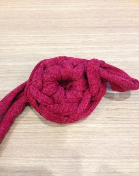 全部で16段で完成なので、一気に編み上げる事が出来ましたが、慣れない超ー太い糸だったので、あみ終わった時は腕に心地よい疲労感が…(苦笑)
