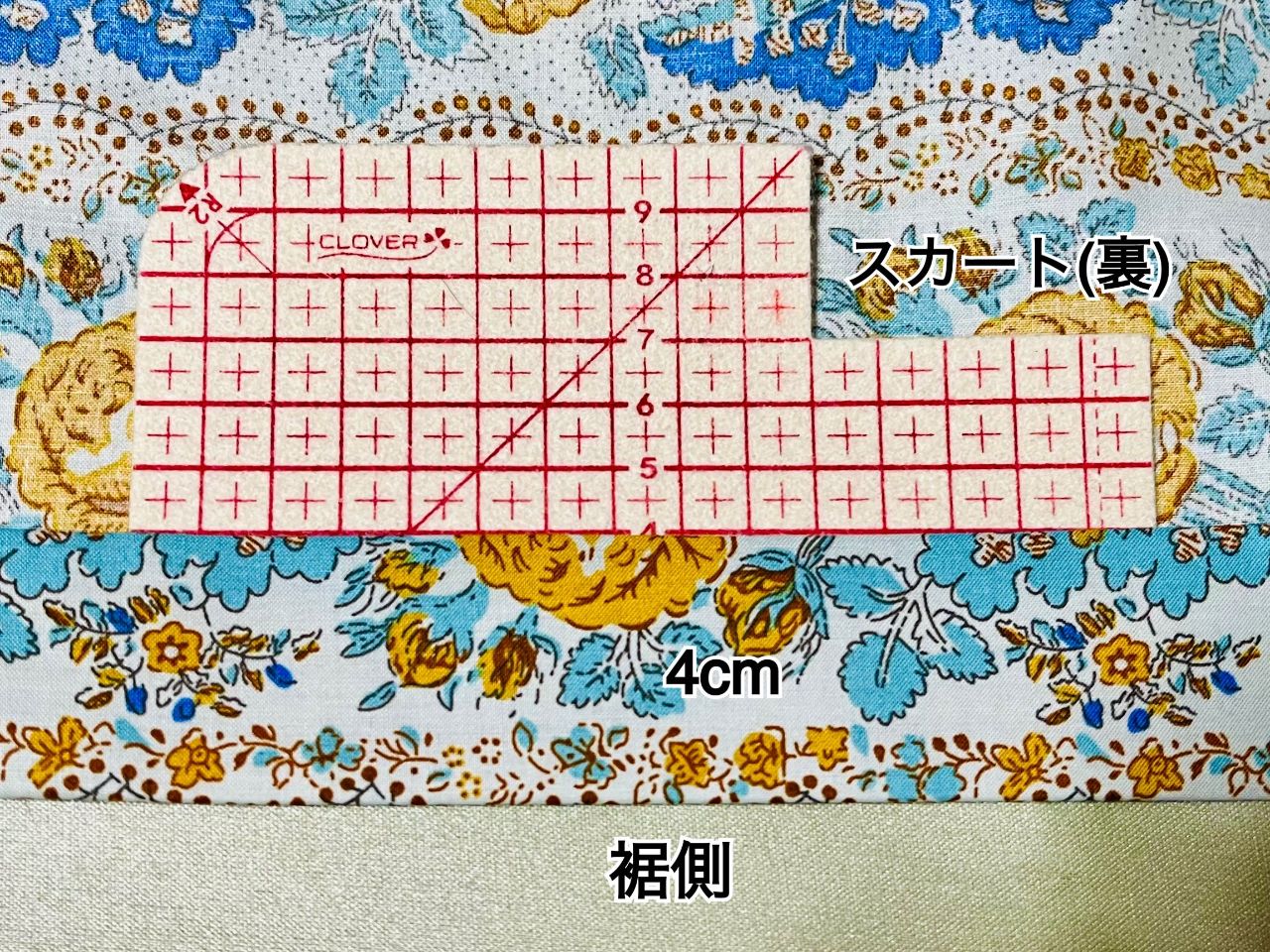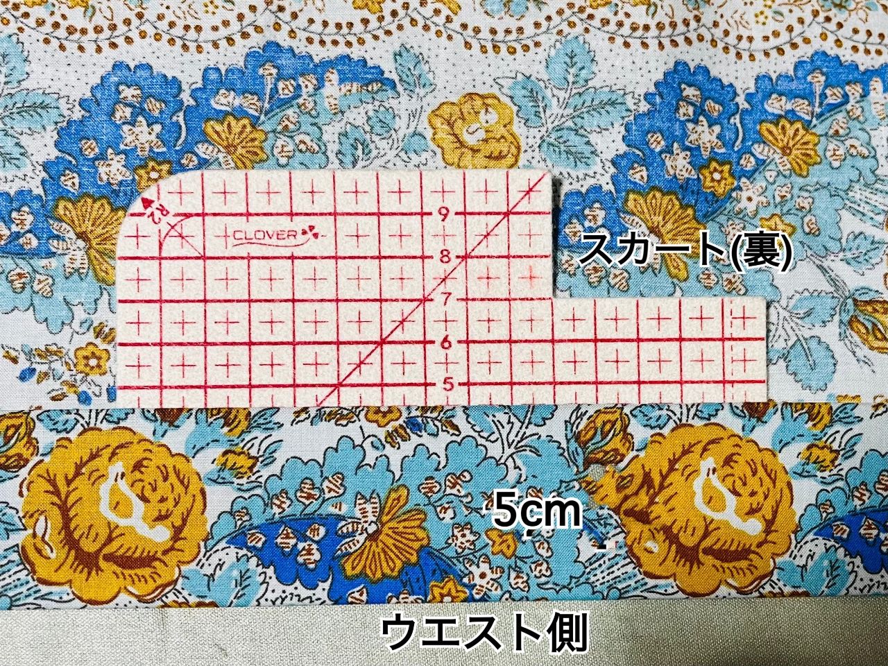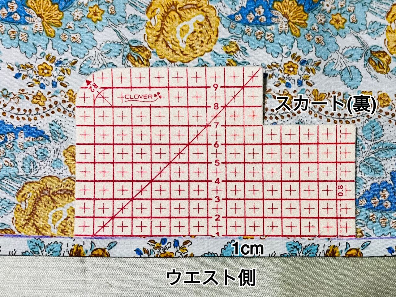 ※柄合わせをする場合は、脇で前後スカートの柄が同じ模様で繋がる様に裁断します。