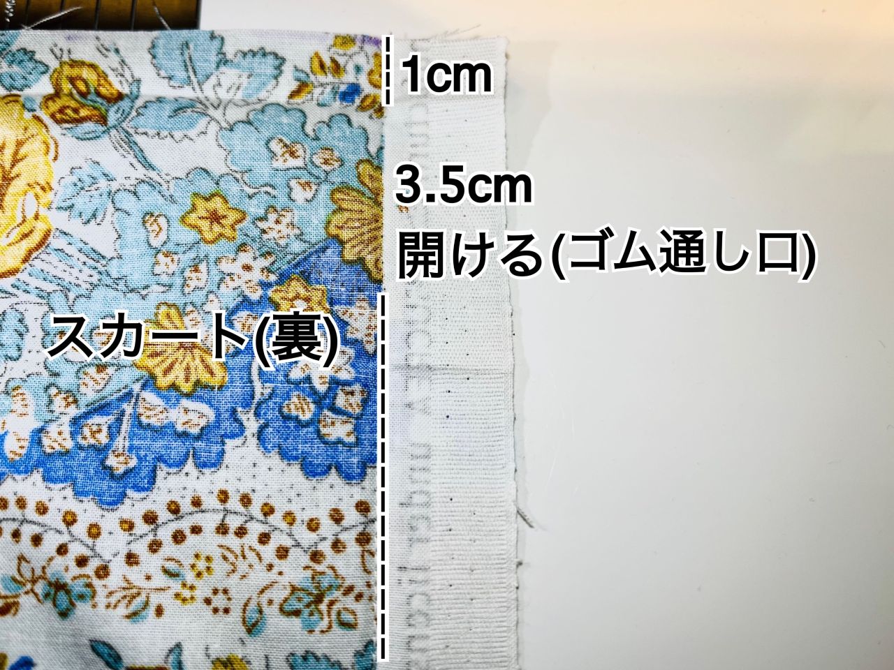 ※この時、片側だけゴム通し口を3cm開けて縫います。