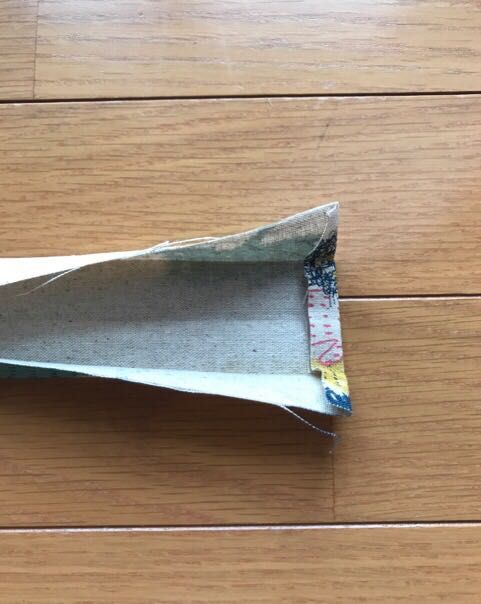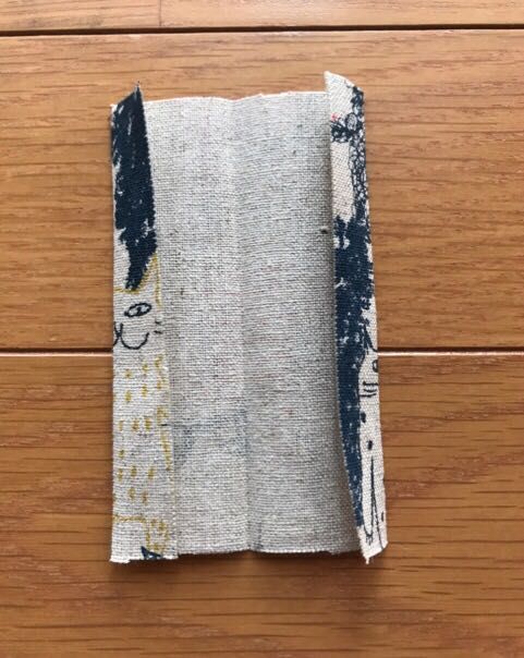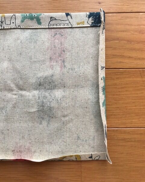 まず、ポケット口を三つ折りして縫い、他の縫い代1㎝はアイロンで折り目をつけておきます。