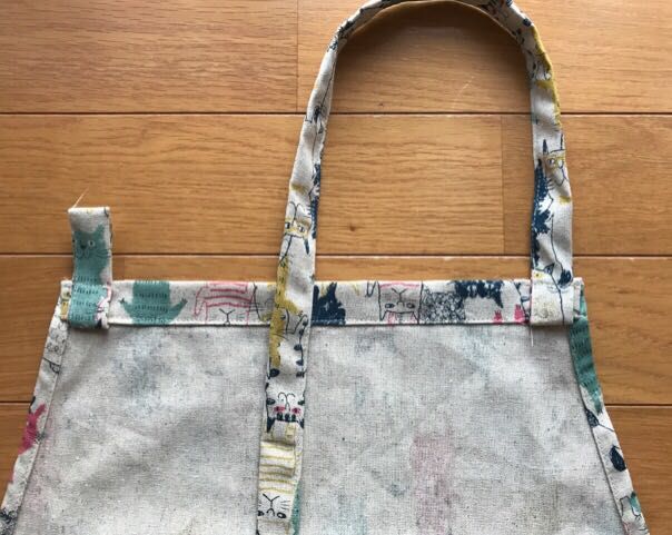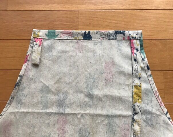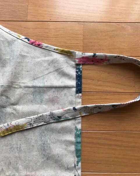 さてさて、先日入荷したとてもかわいい柄の綿麻生地の1m着分でエプロンを作りました!