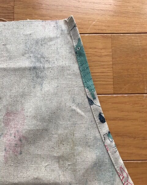 脇〜裾〜脇を1㎝の三つ折りで縫います。