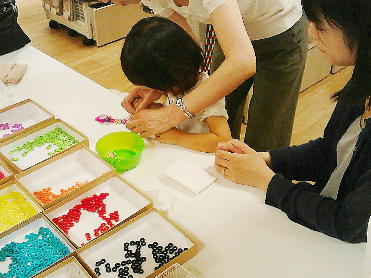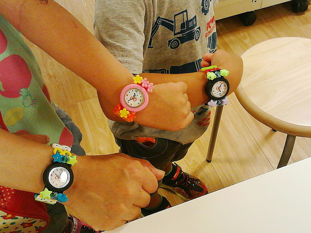 さてさて、今日の講習会では、小さなお子様たちが頑張ってトワコロンの腕時計を作りました!