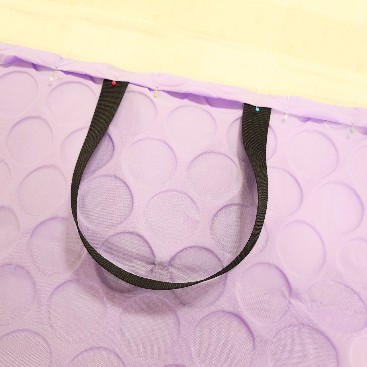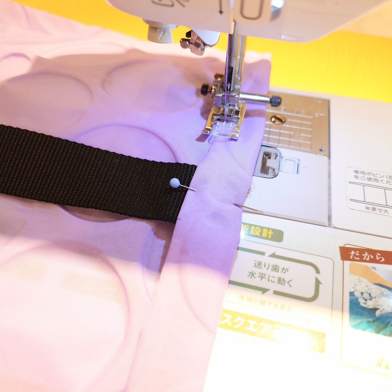袋の口を持ち手を挟み込んで一緒に縫う。