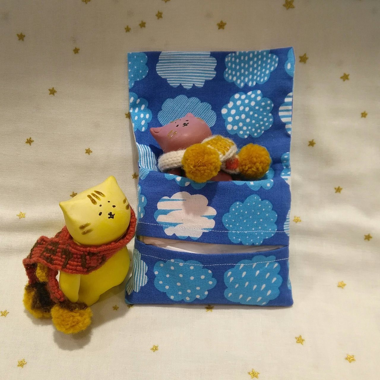 ティッシュと、ハンカチが入るポケットがある便利な形だよ!