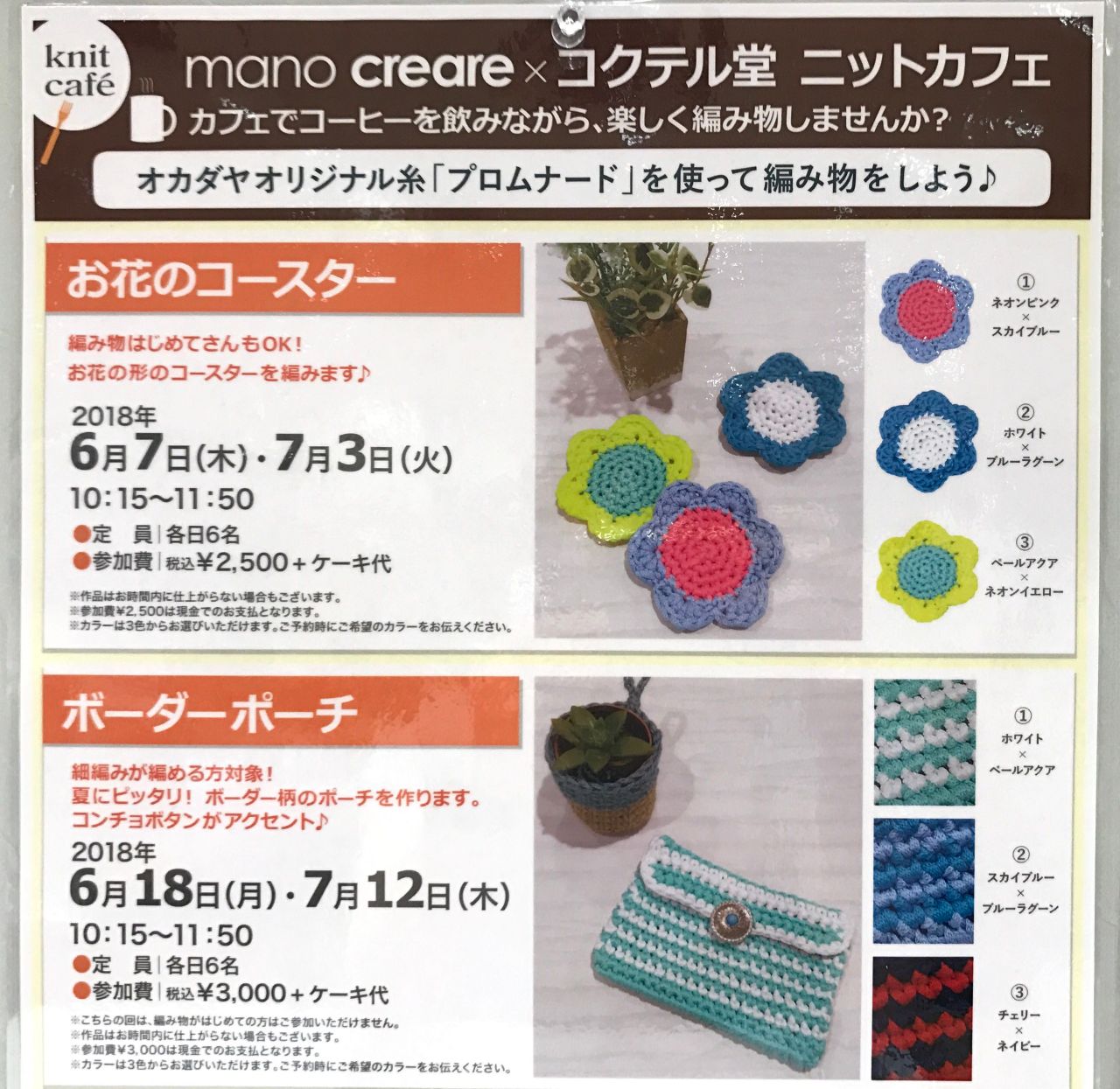 6月〜7月にかけて開催する、カフェコクテル堂さんで行うニットカフェ☆