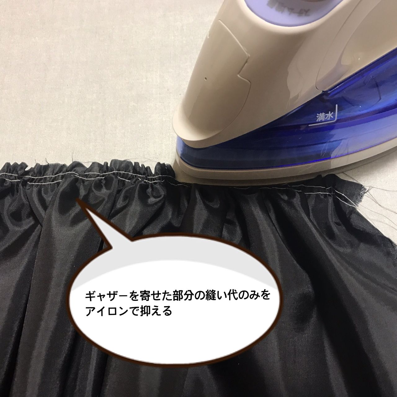 糸を取ったら、ギャザーがよった縫い代をアイロンで落ち着かせます。