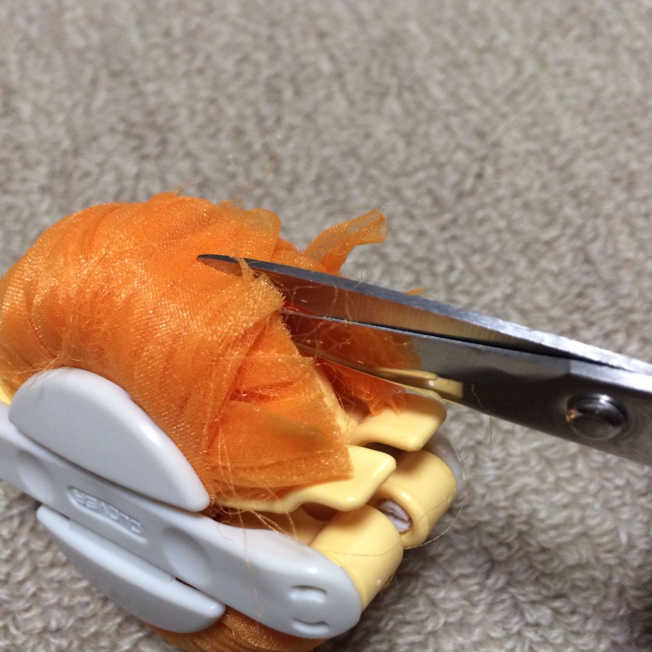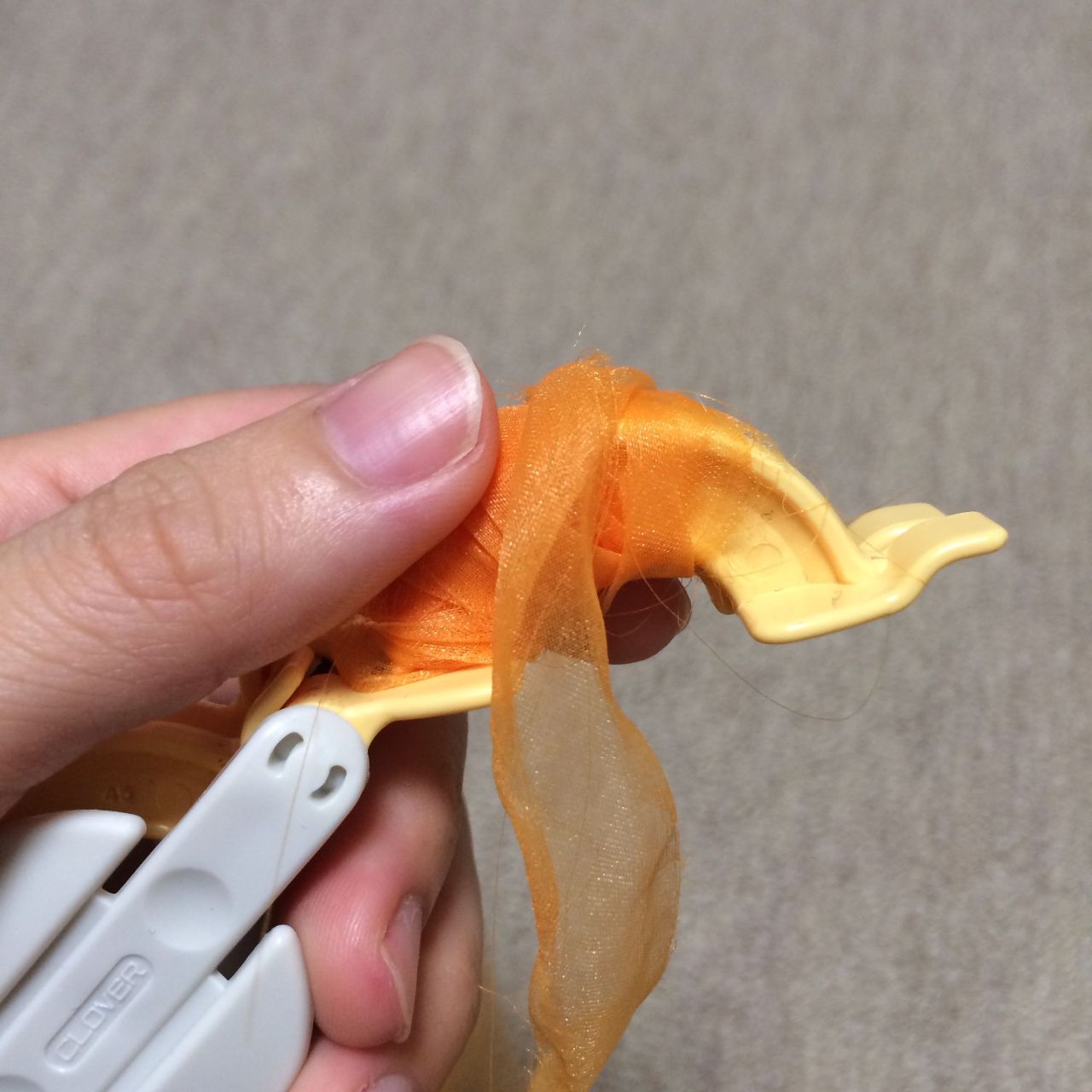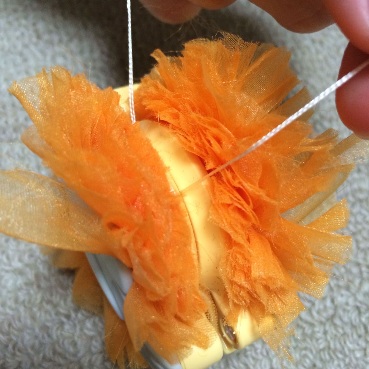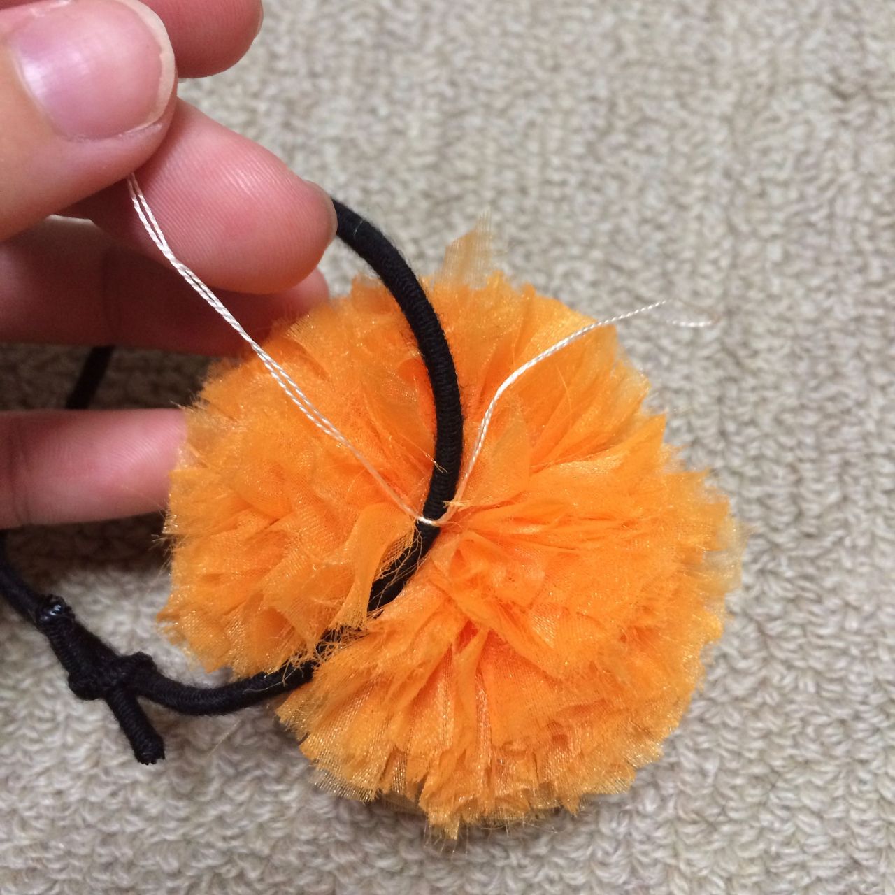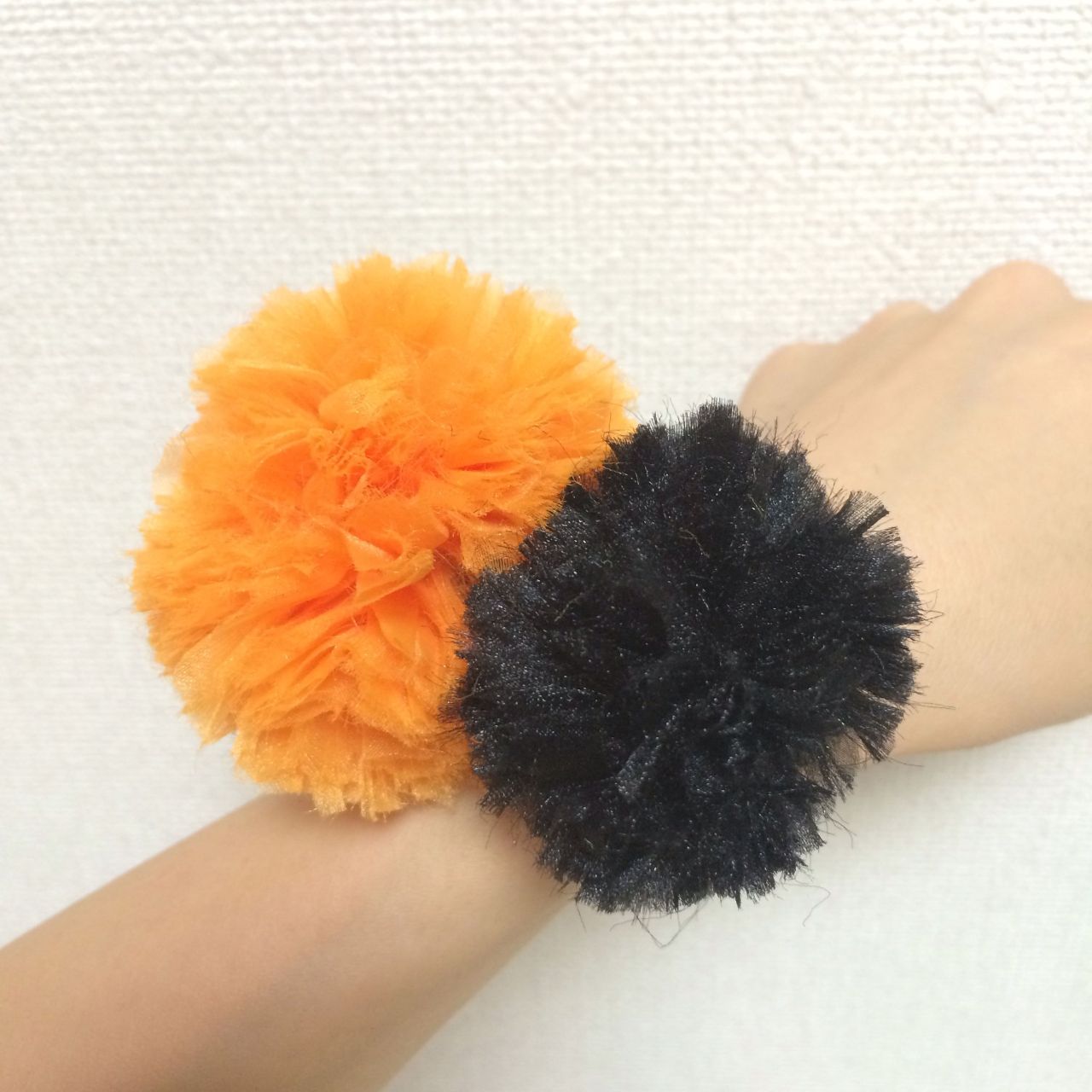 オーガンジーで作るハロウィンカラーのポンポンアクセサリー