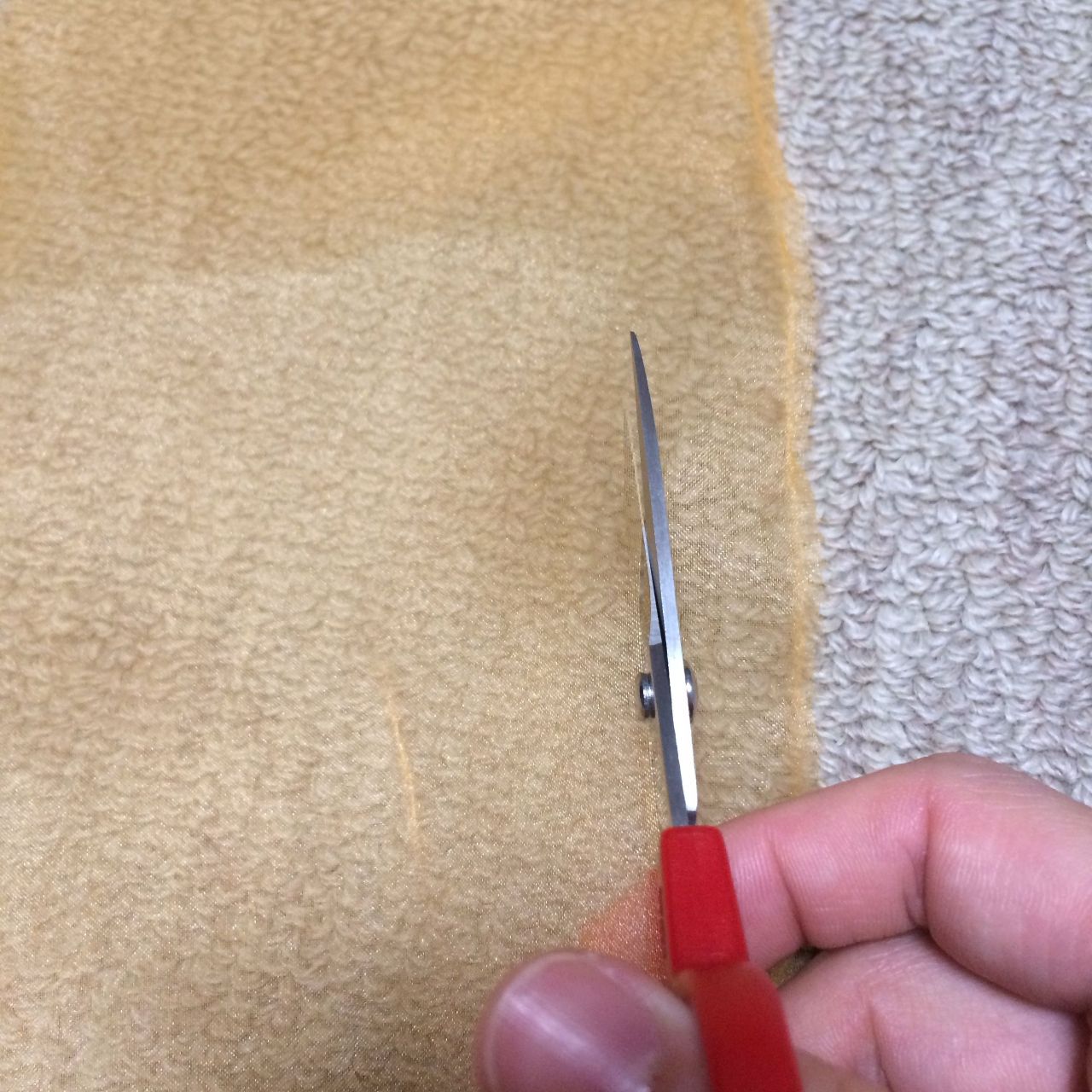 オーガンジーは横地方向に裂けるので、はさみで切り込みを入れて手で裂くと、かんたんにまっすぐ切れます☆