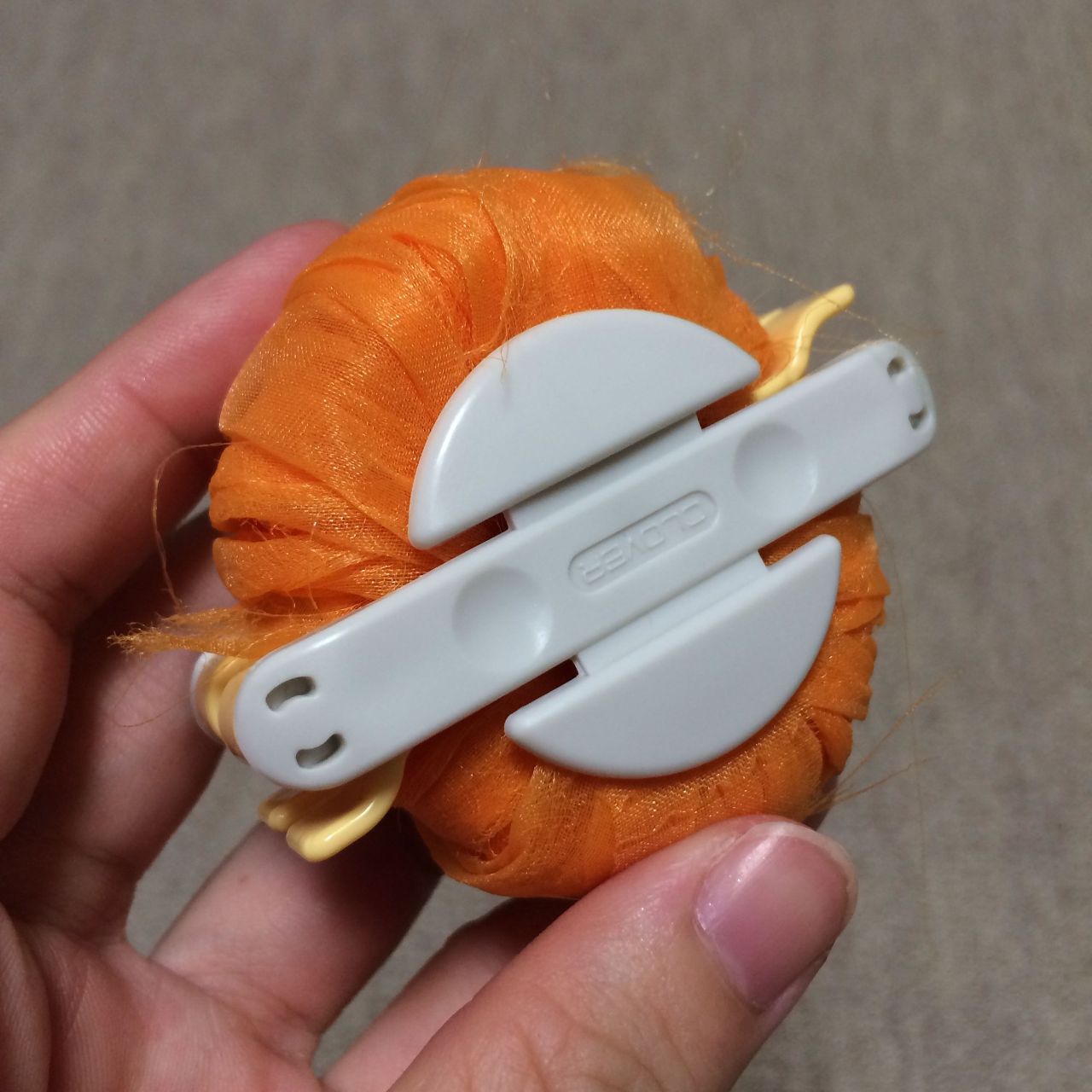 ④ポンポンメーカーからはずして、はさみで丸く整えます。