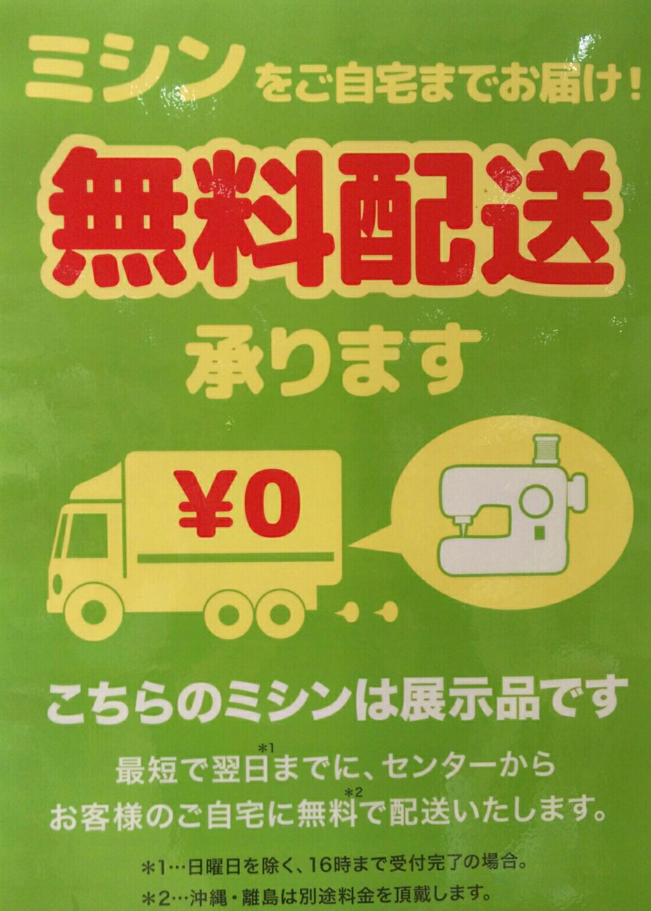 みなとみらい店では店頭でミシンを購入して頂くと、無料配送することができます!!