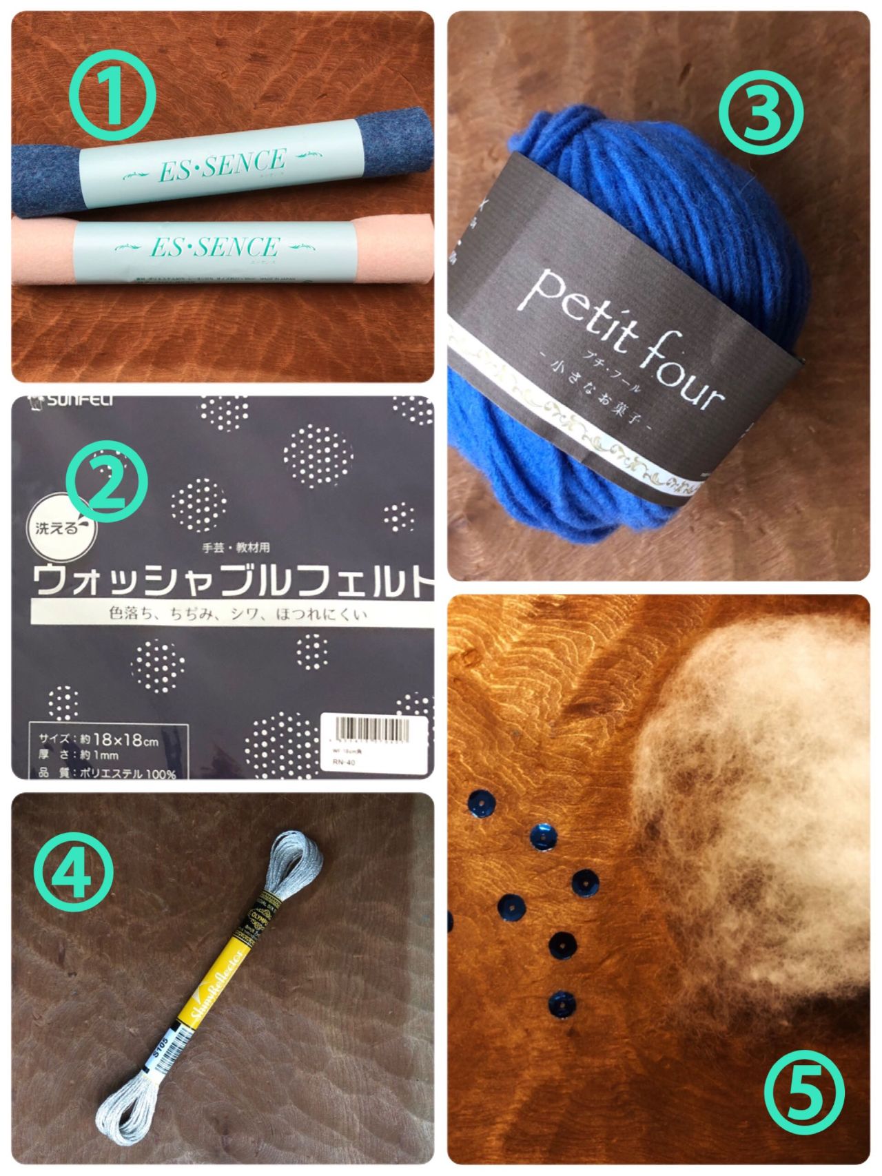 注:フェルトはどんな種類でも可能です。今回は色で選びました。