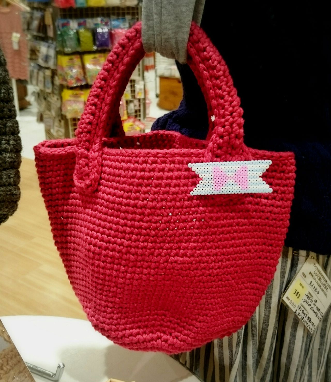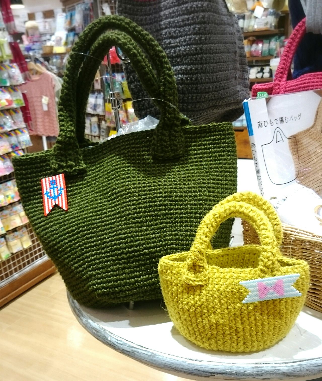 出来上がったら、色んなバッグに合わせてみましょう♪