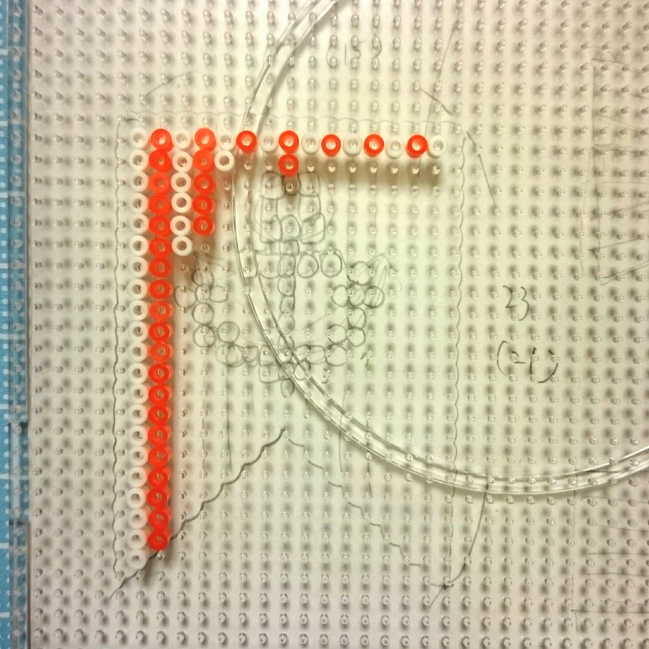 ①専用プレートに、アイロンビーズを並べます。