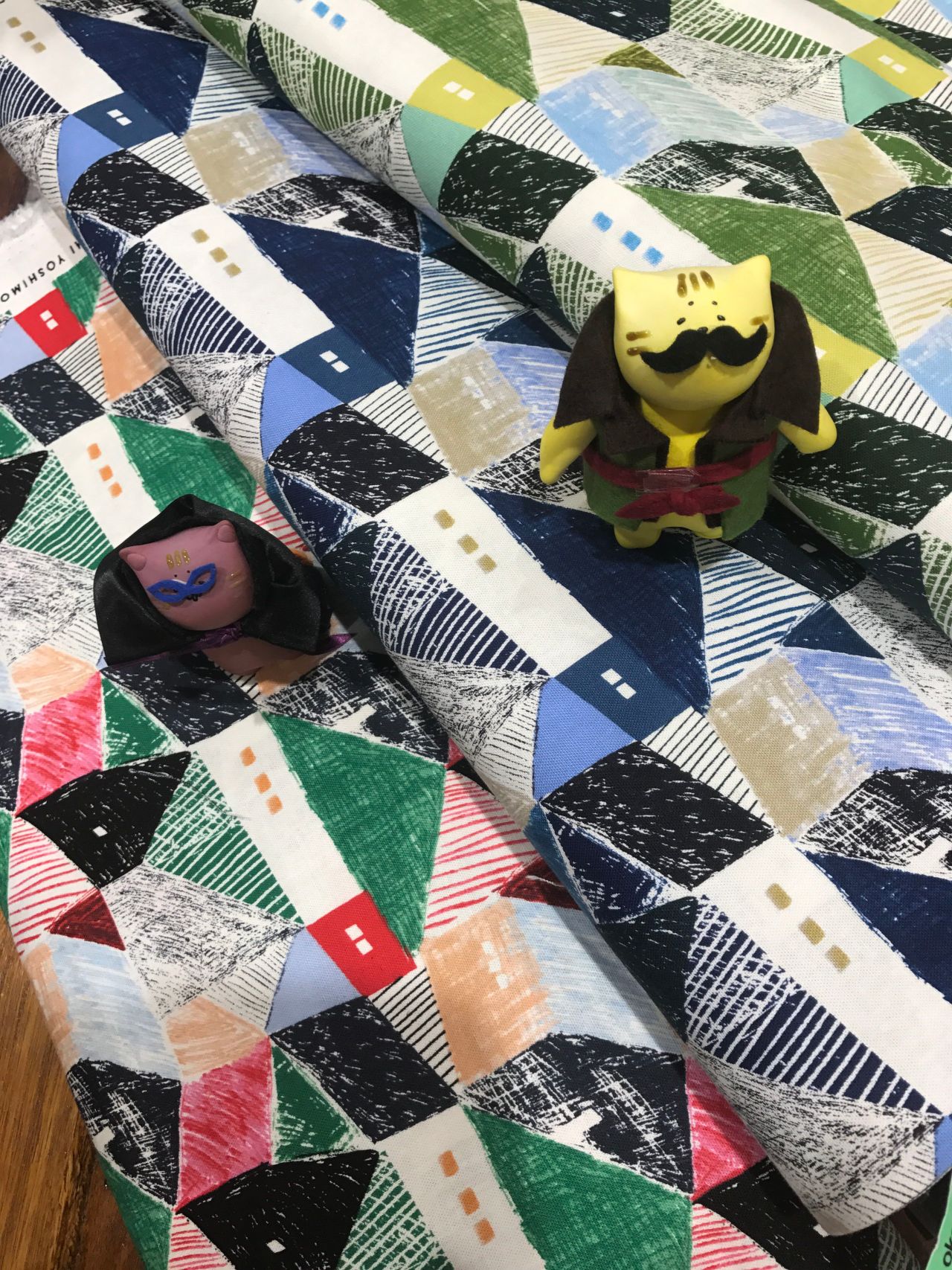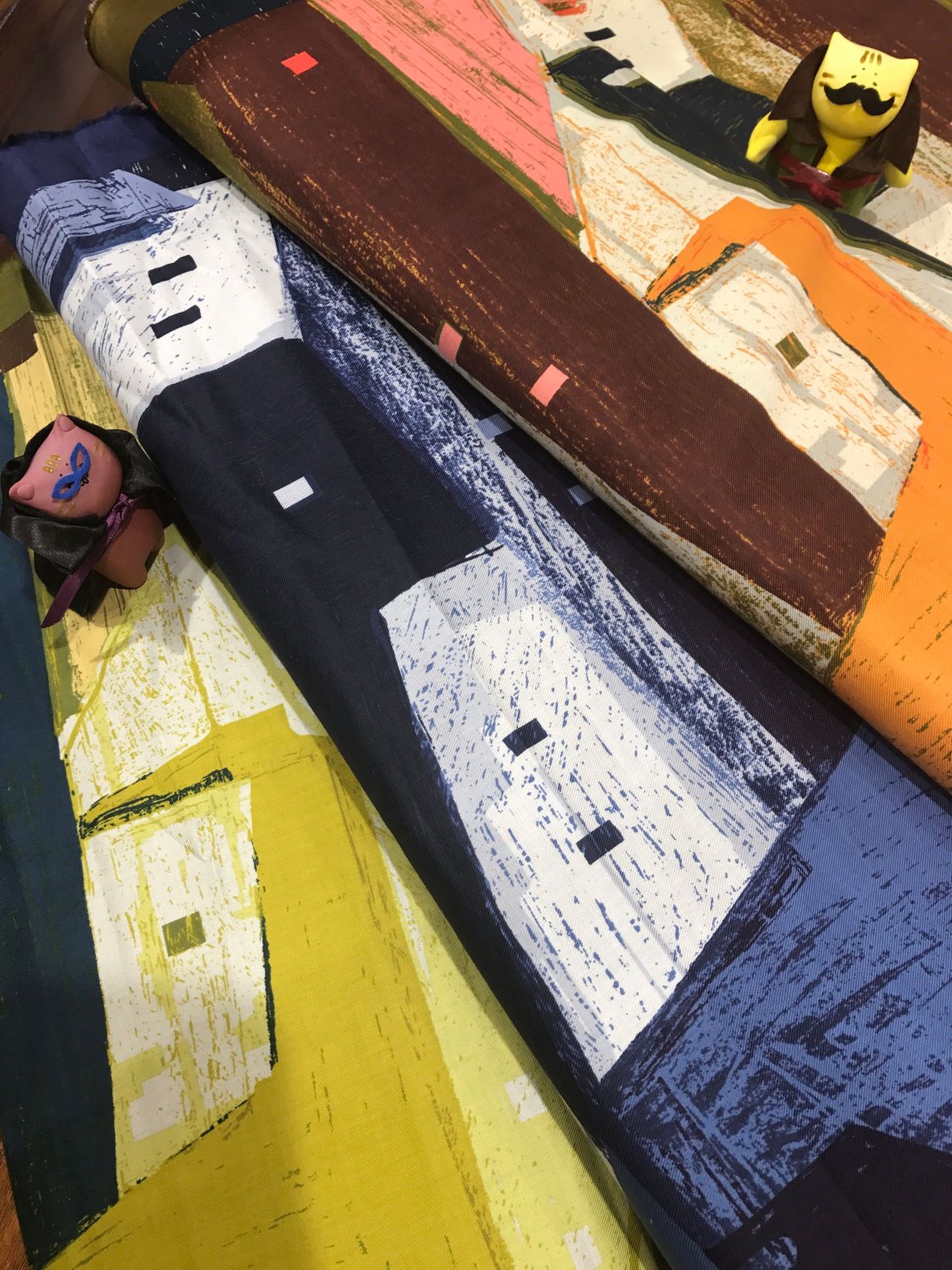 こちらもチェック?と思いきやよく見るとお家の柄の様にも見えるテキスタイルの生地!