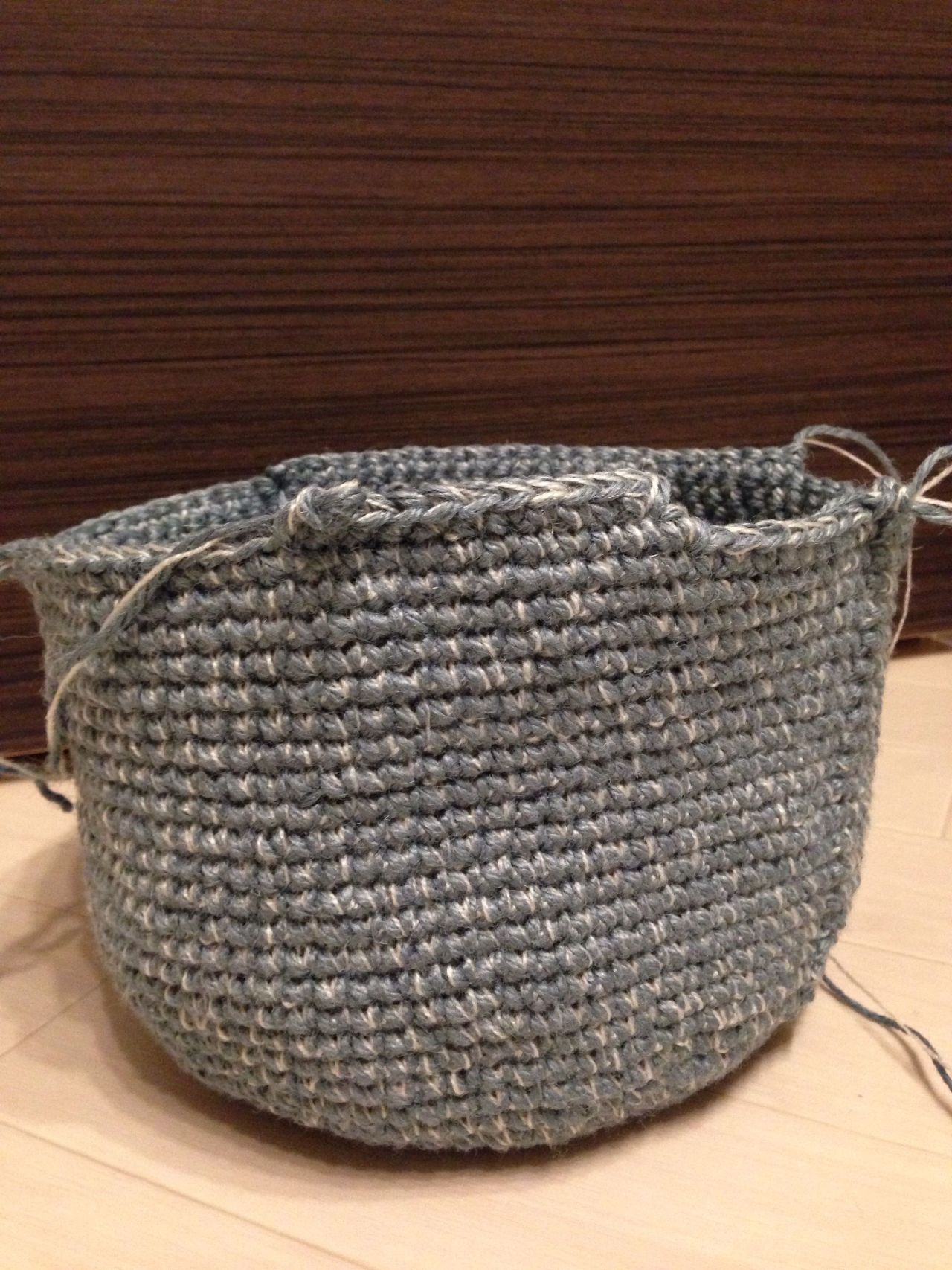 ダルマの麻ひもとハマナカのティノを引き揃えてマルシェバッグを作ってみました!!