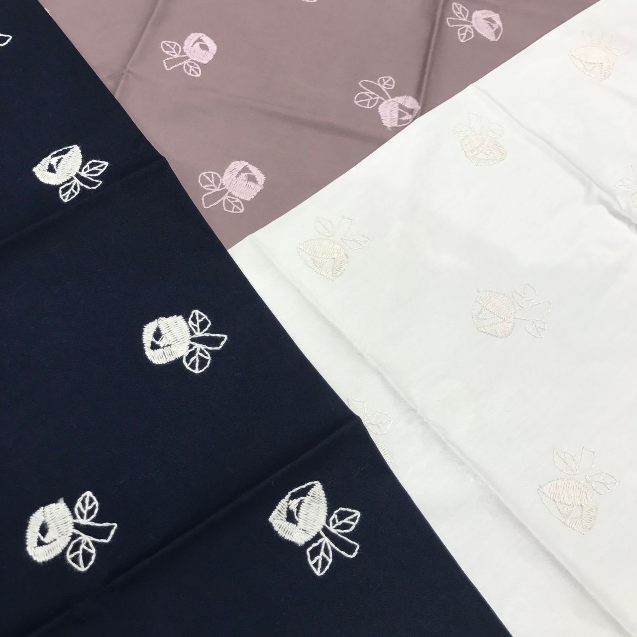 どちらもブロードくらいの厚みの生地に刺繍がされているよ!