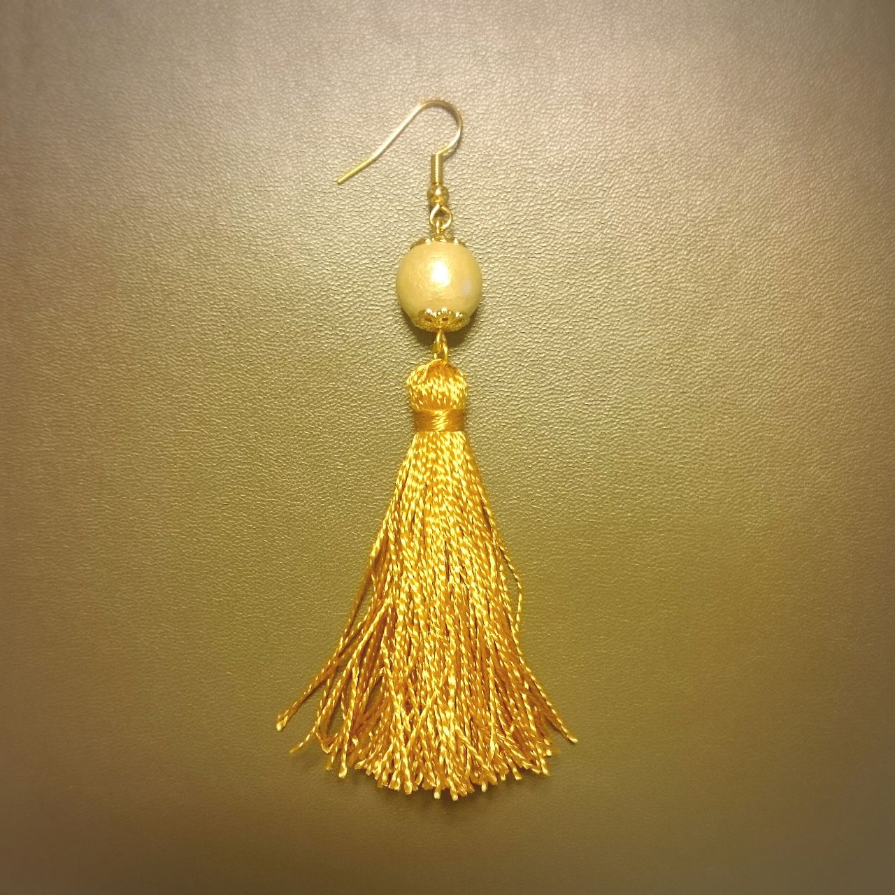 コットンパールに、タッセルをプラスしたピアスです( ☆∀☆)