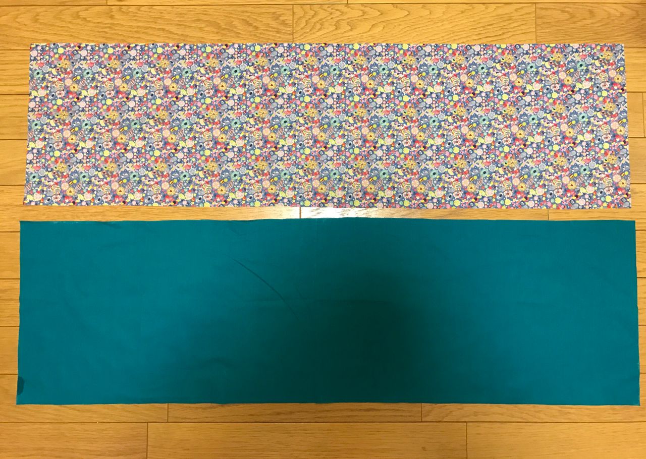 ⑵表地、裏地を中表に合わせて裾の切り替え部分を1cmで縫い合わせます!