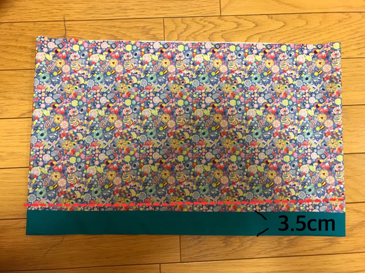 ⑸裾の部分3.5cm出してアイロンで折ります。