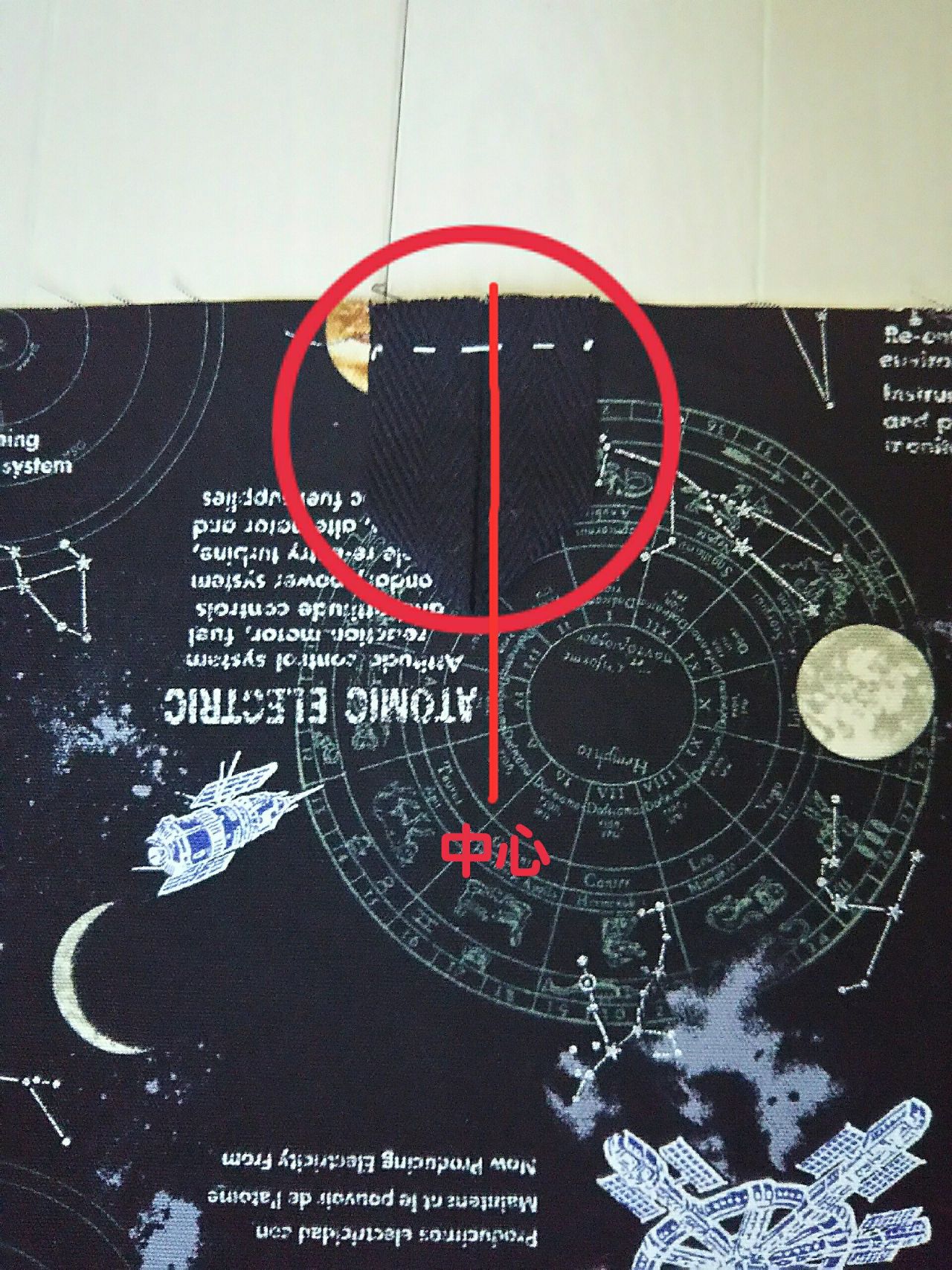 ②半分に折ったテープを表中心にのせ、仮止めをする。