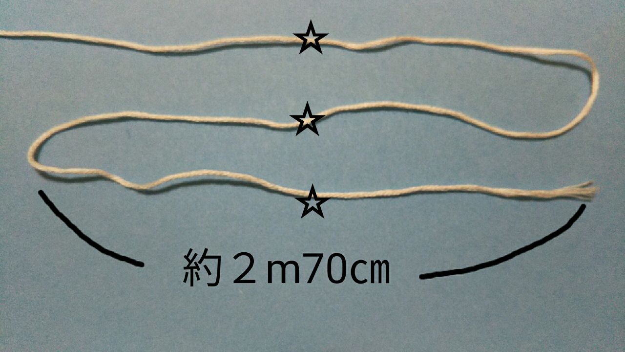 まず、刺繍糸は約8メートルあるので、約2.7メートル位に3分割にします( 伸ばさずフンワリ計ってね)