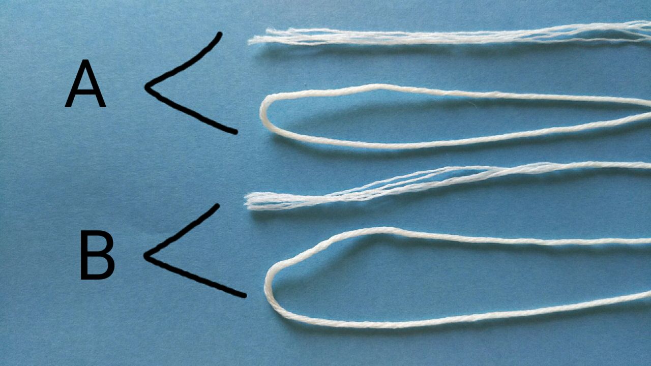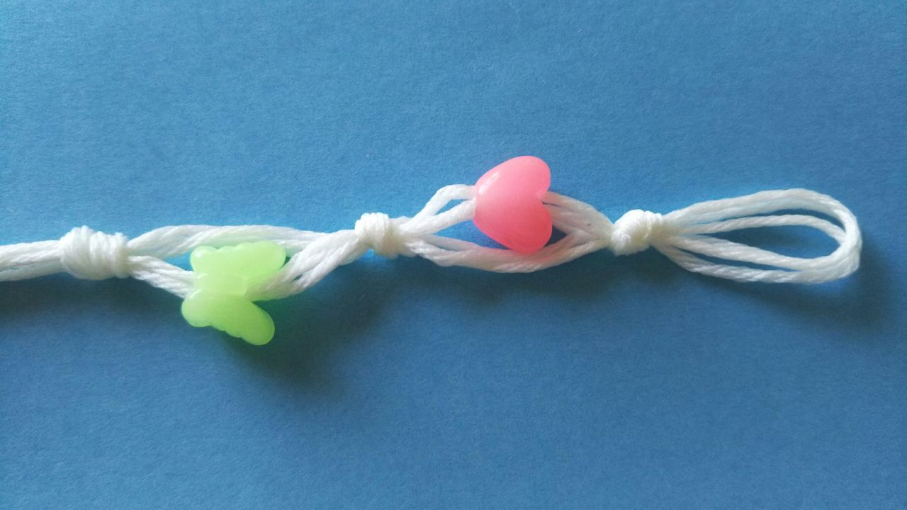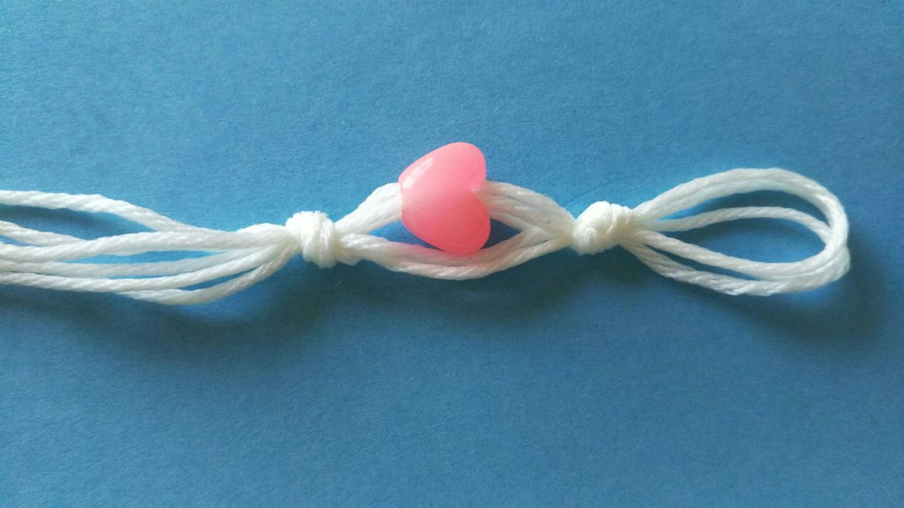 Aにビーズを1つ通したら、AとBまとめて結びます