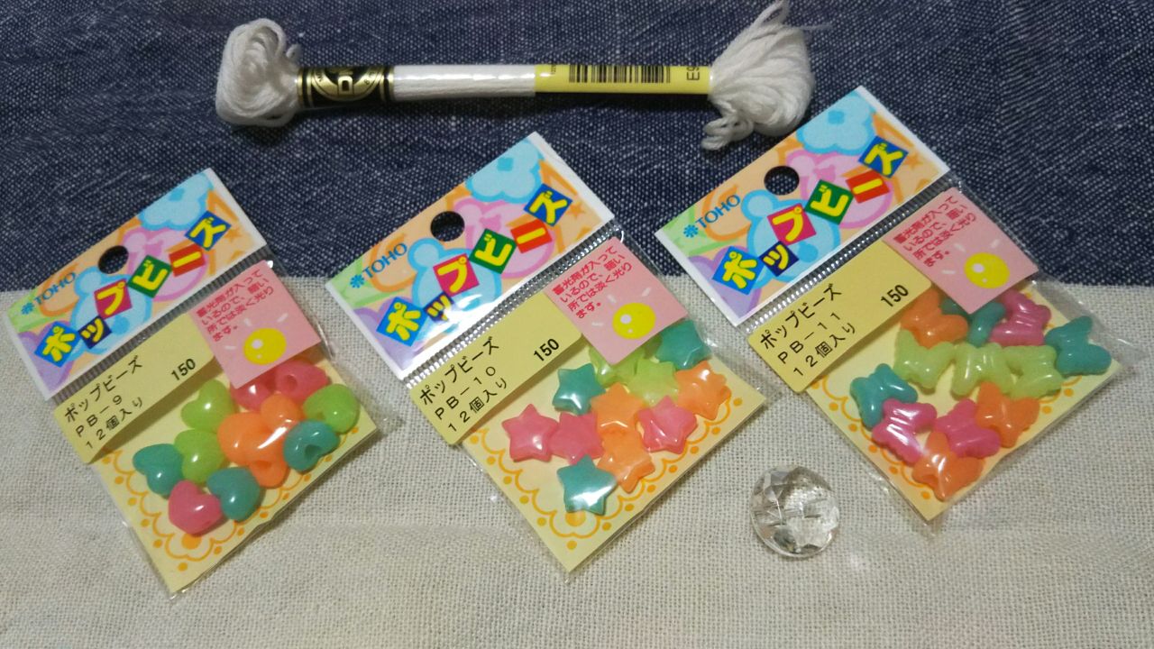 しかも!今回使う刺繍糸とビーズには蓄光剤が入ってるので、暗い所で淡く光るんです!