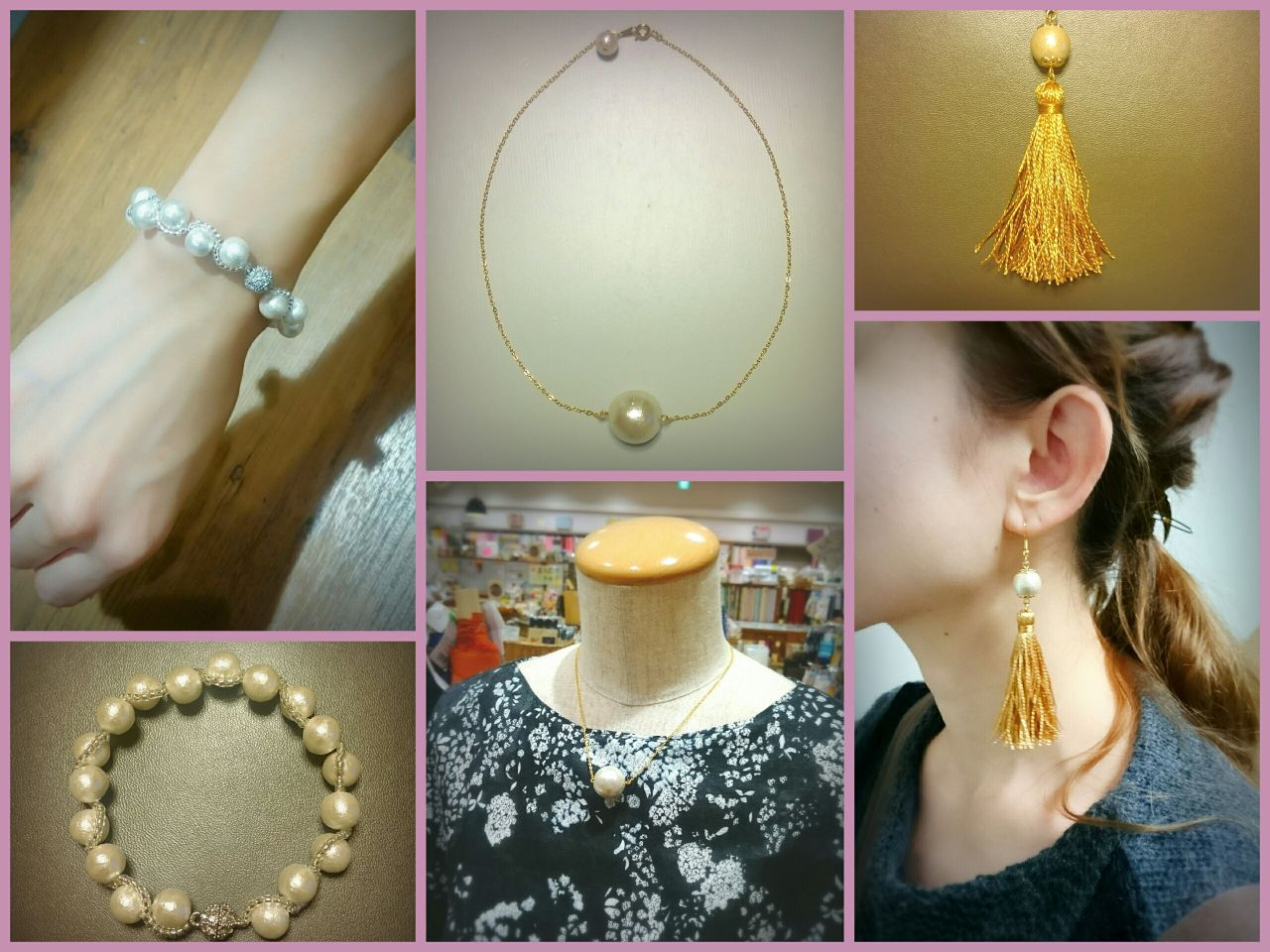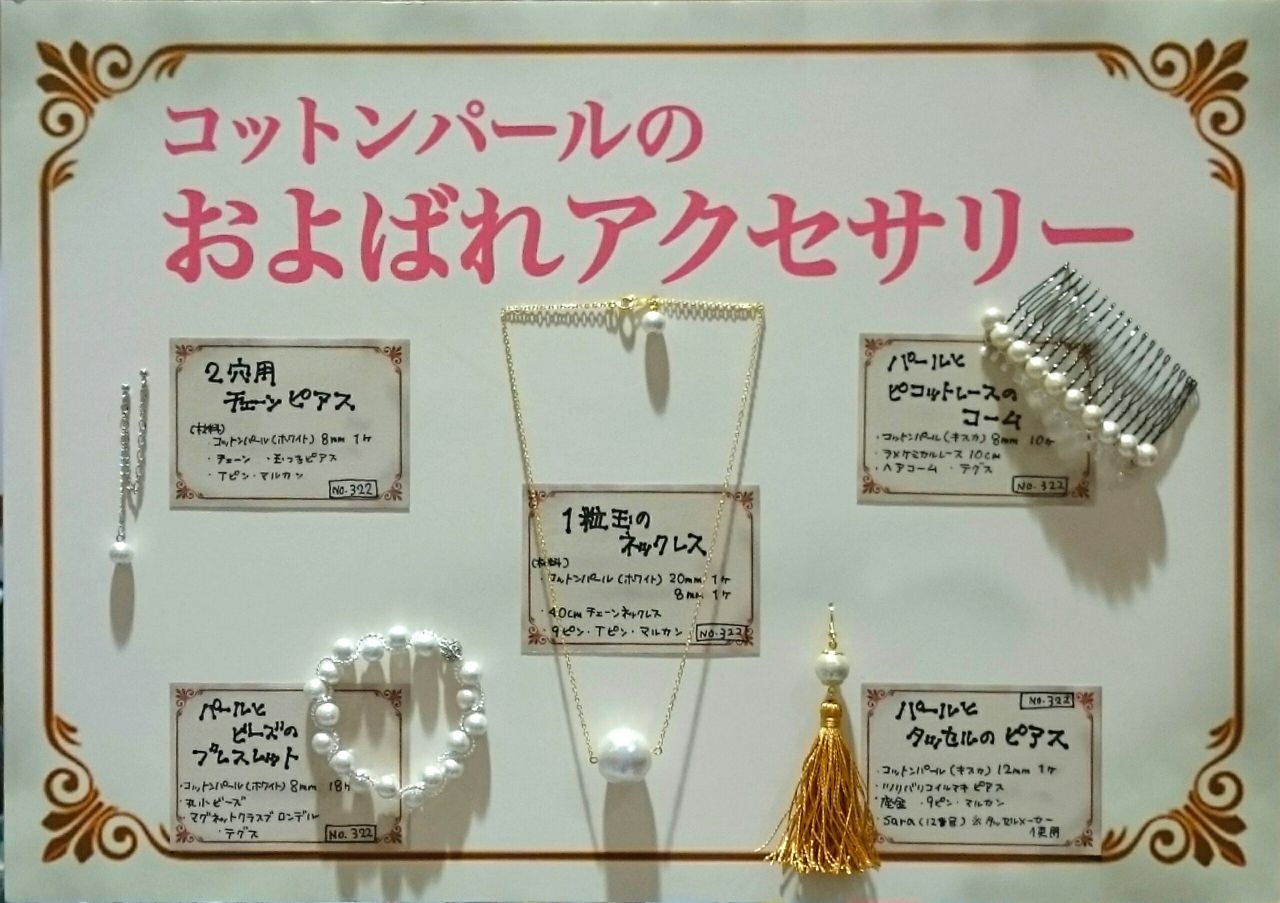 今日は、これからの季節にオススメの、コットンパールを使ったアクセサリーのコーナーをご紹介☆