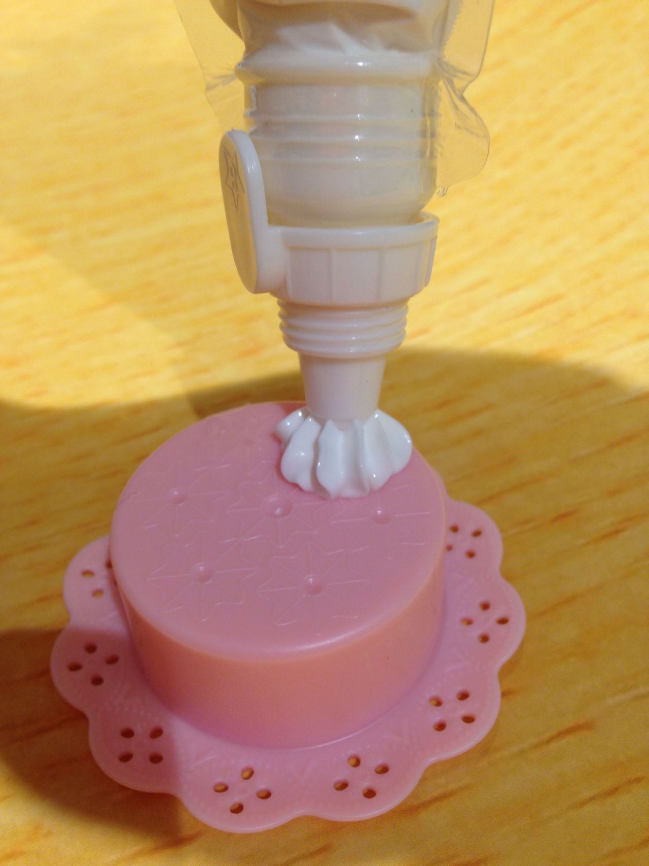 ホイップの先に細い棒が出てるからそれを土台のくぼみにあててホイップをだします!