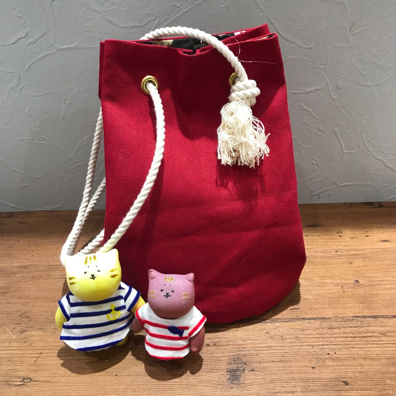 表地はぱっと目をひく色鮮やかな赤のハーフリネンツイル、裏生地にはリバティの春夏新作を使用してます。