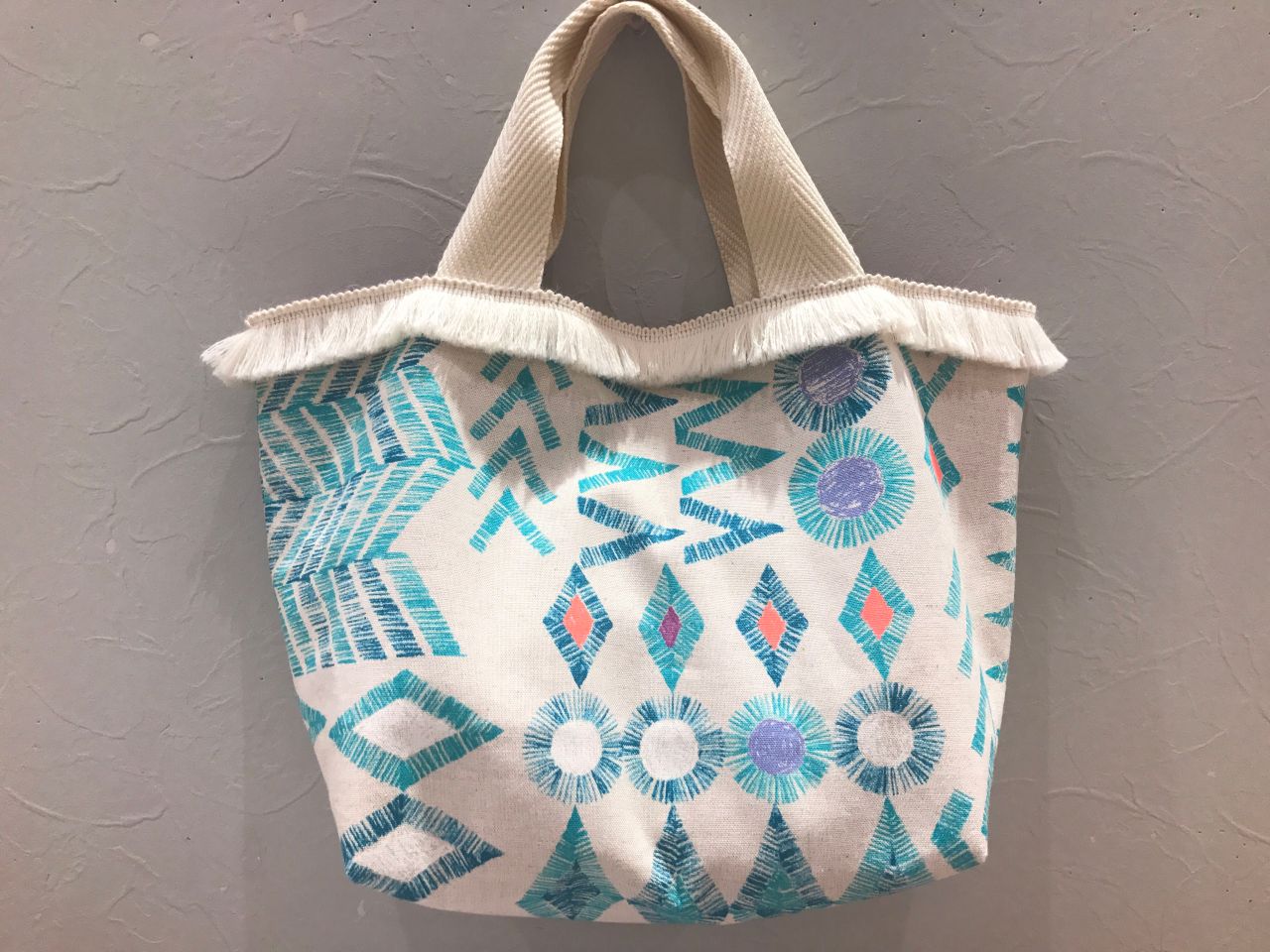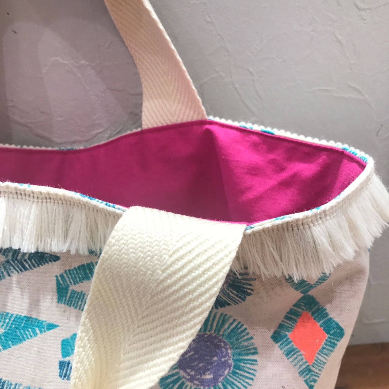 バッグの口にはフリンジをつけて、