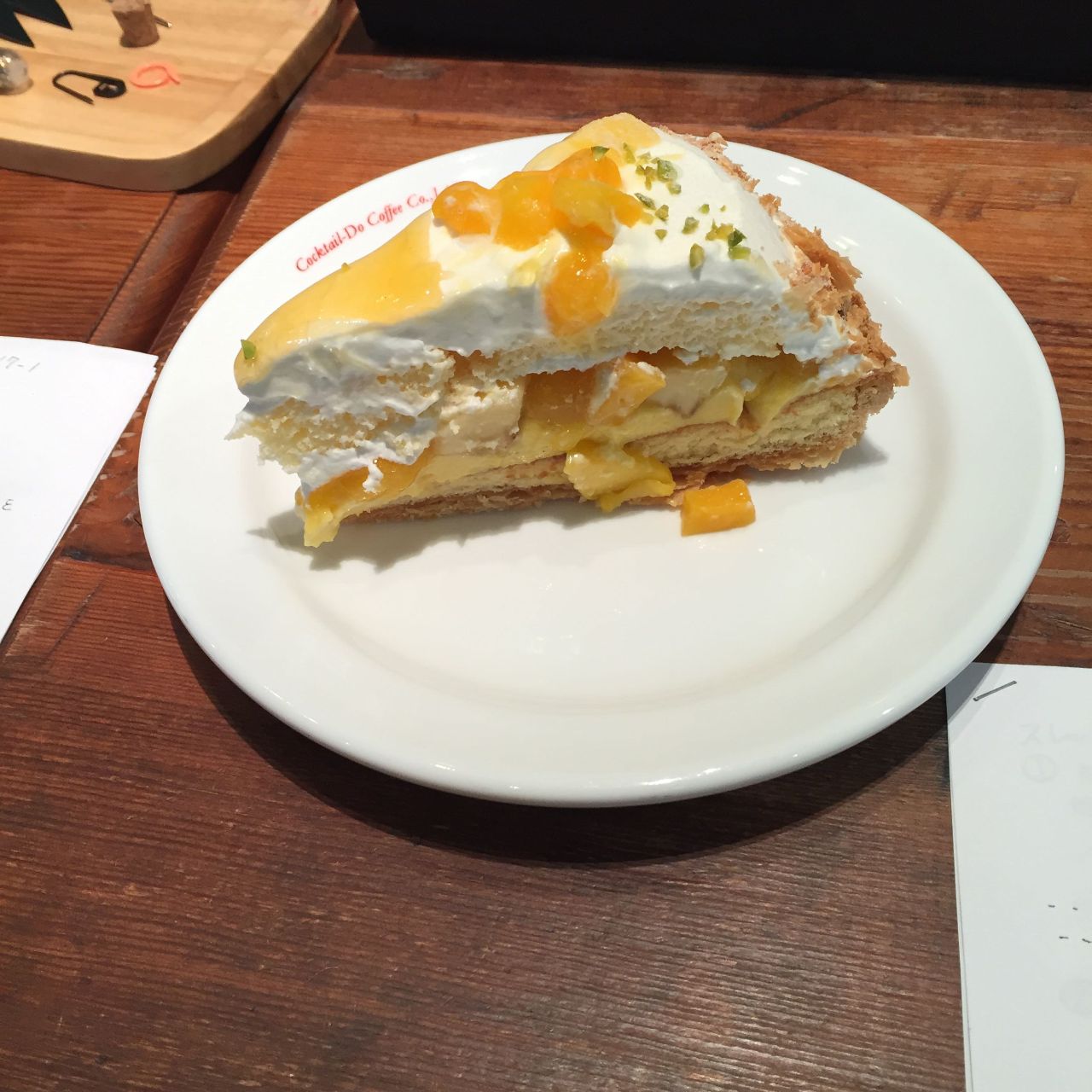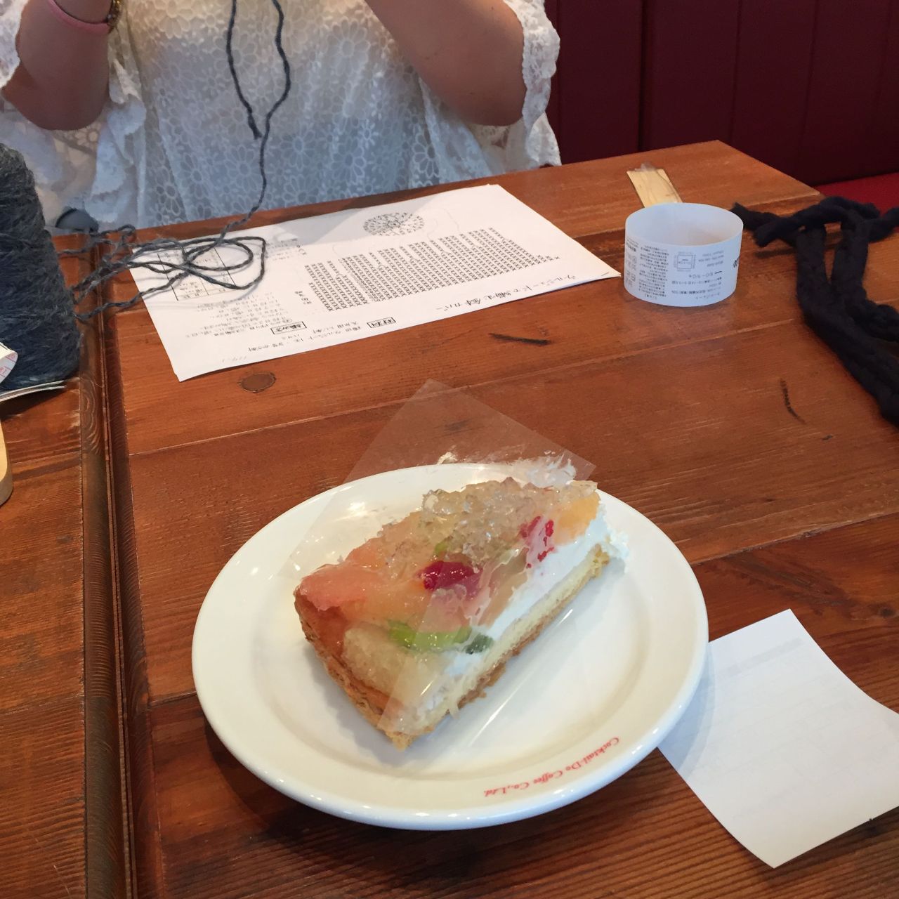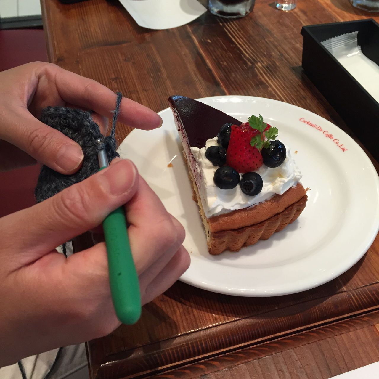 編んでいるうちにコーヒーとケーキが到着しました♪