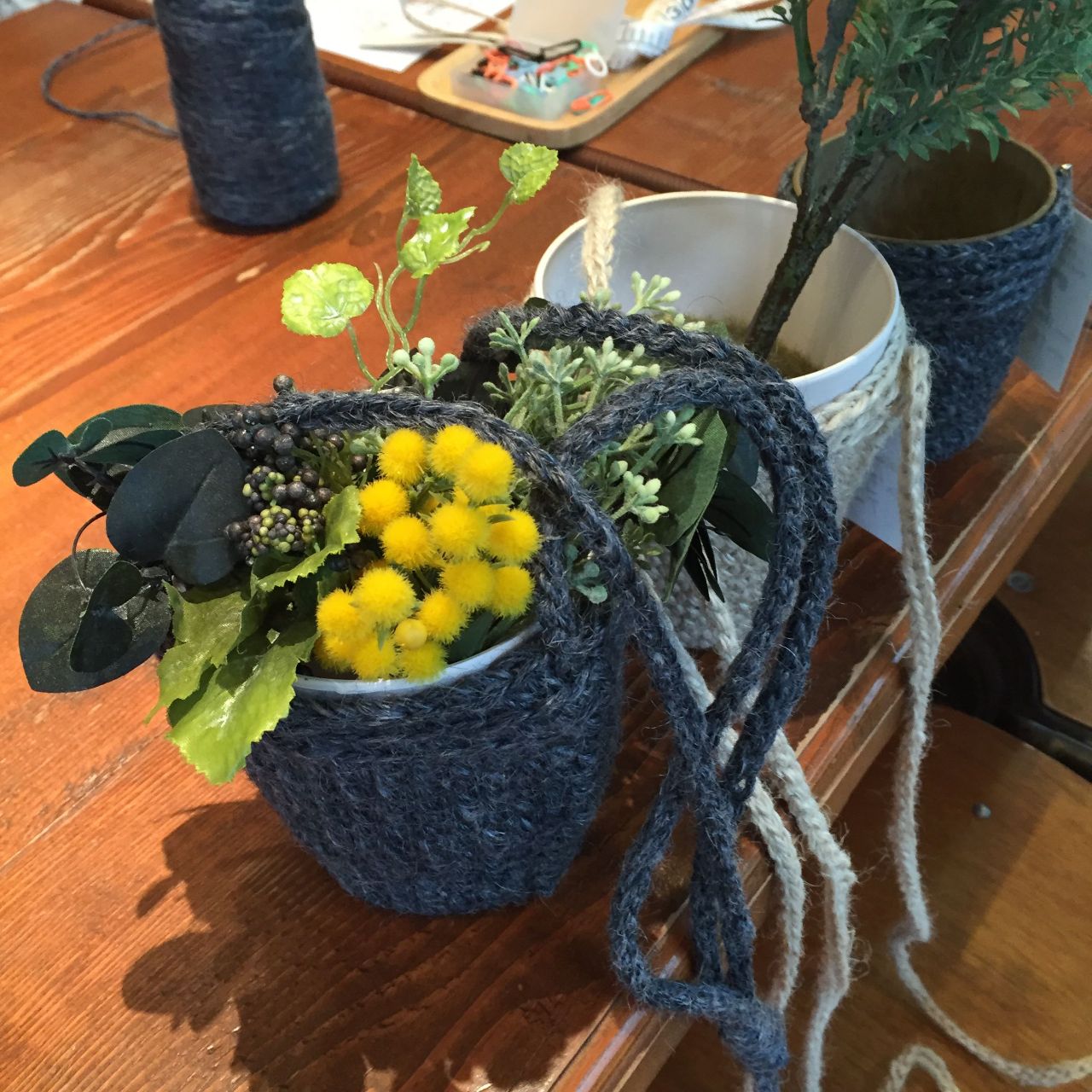場所はMARK IS みなとみらい3階のコクテル堂さんの一画をお借りして、ウールジュートを使用したプラントカバーを作成しました