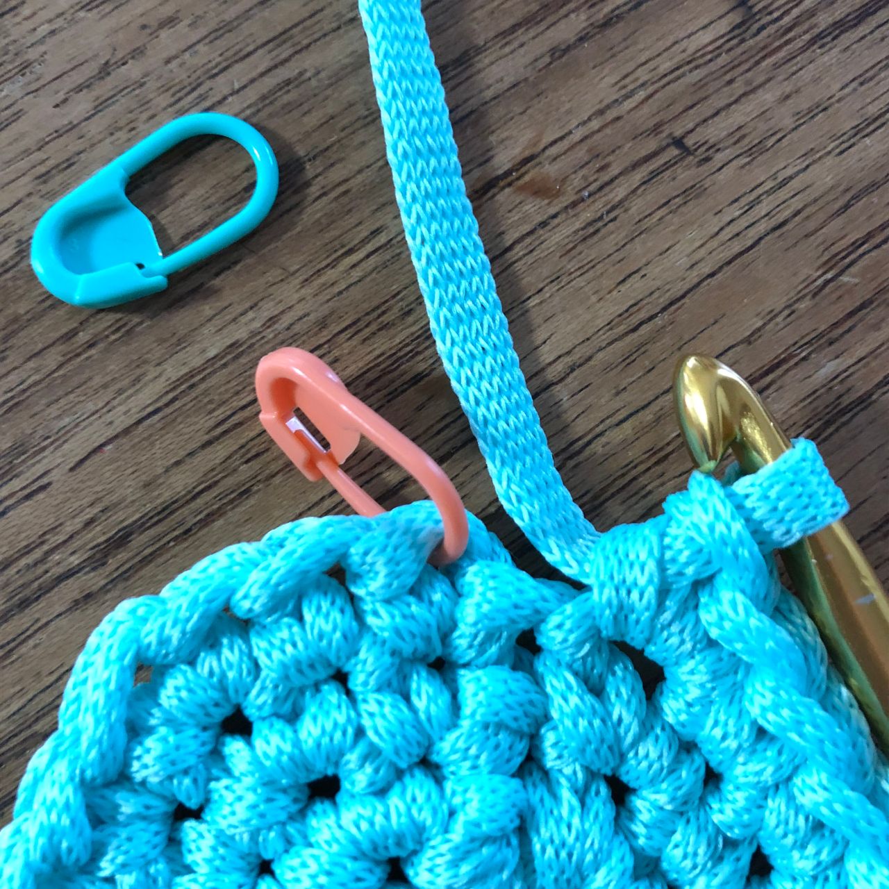 4段目の終わりの引き抜き編みで色を変えます。