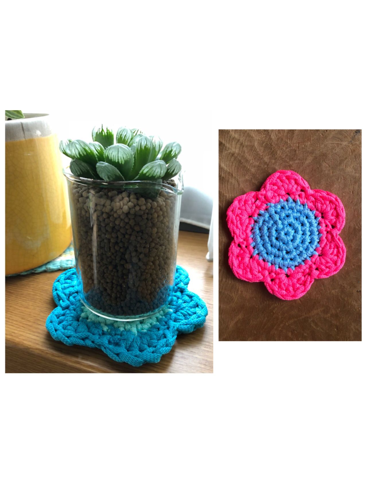7月3日(火)には、こちらのお花のモチーフコースターを編むニットカフェを開催いたします。