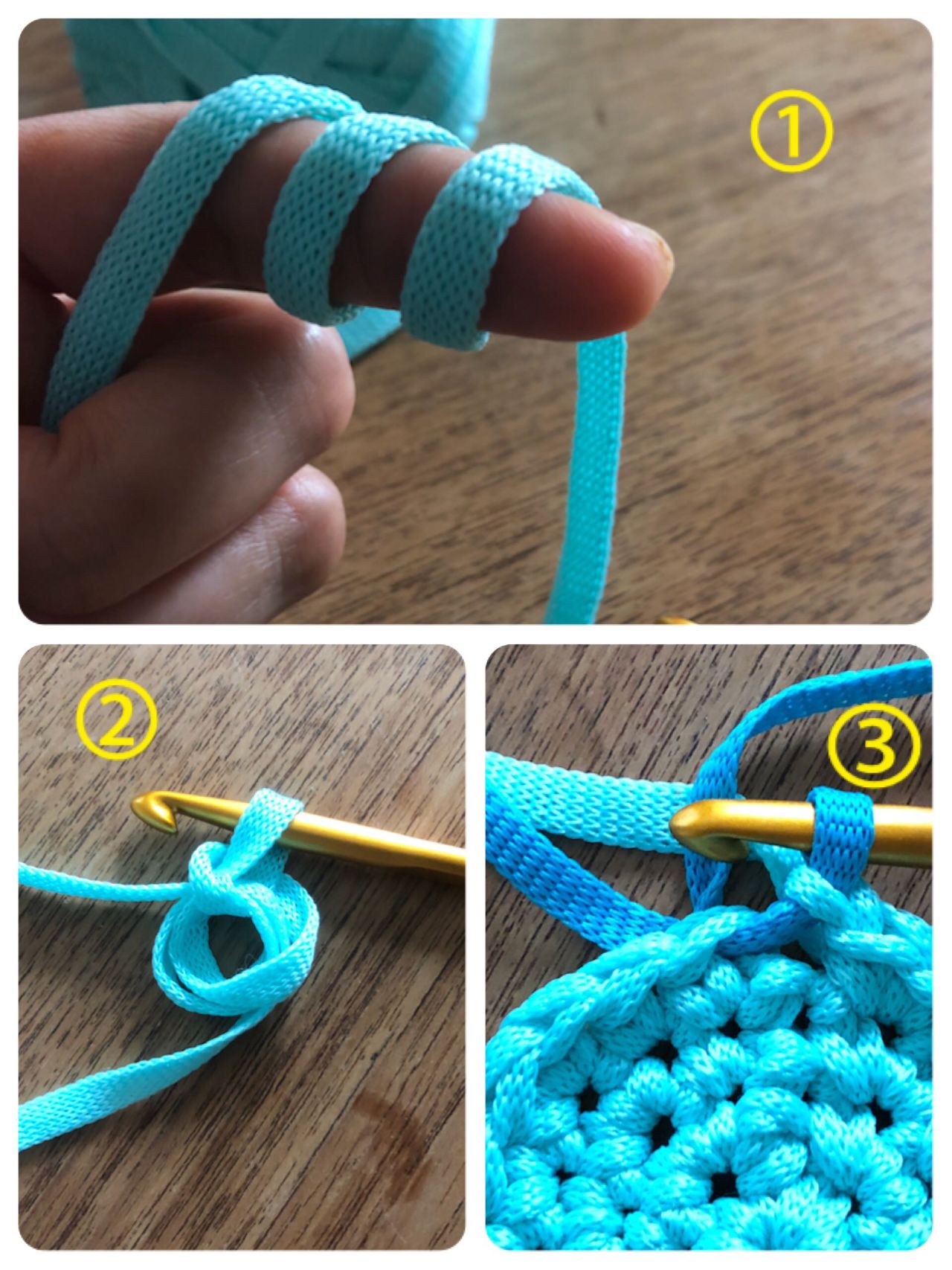 ③編み図通りに増し目をして円にします。