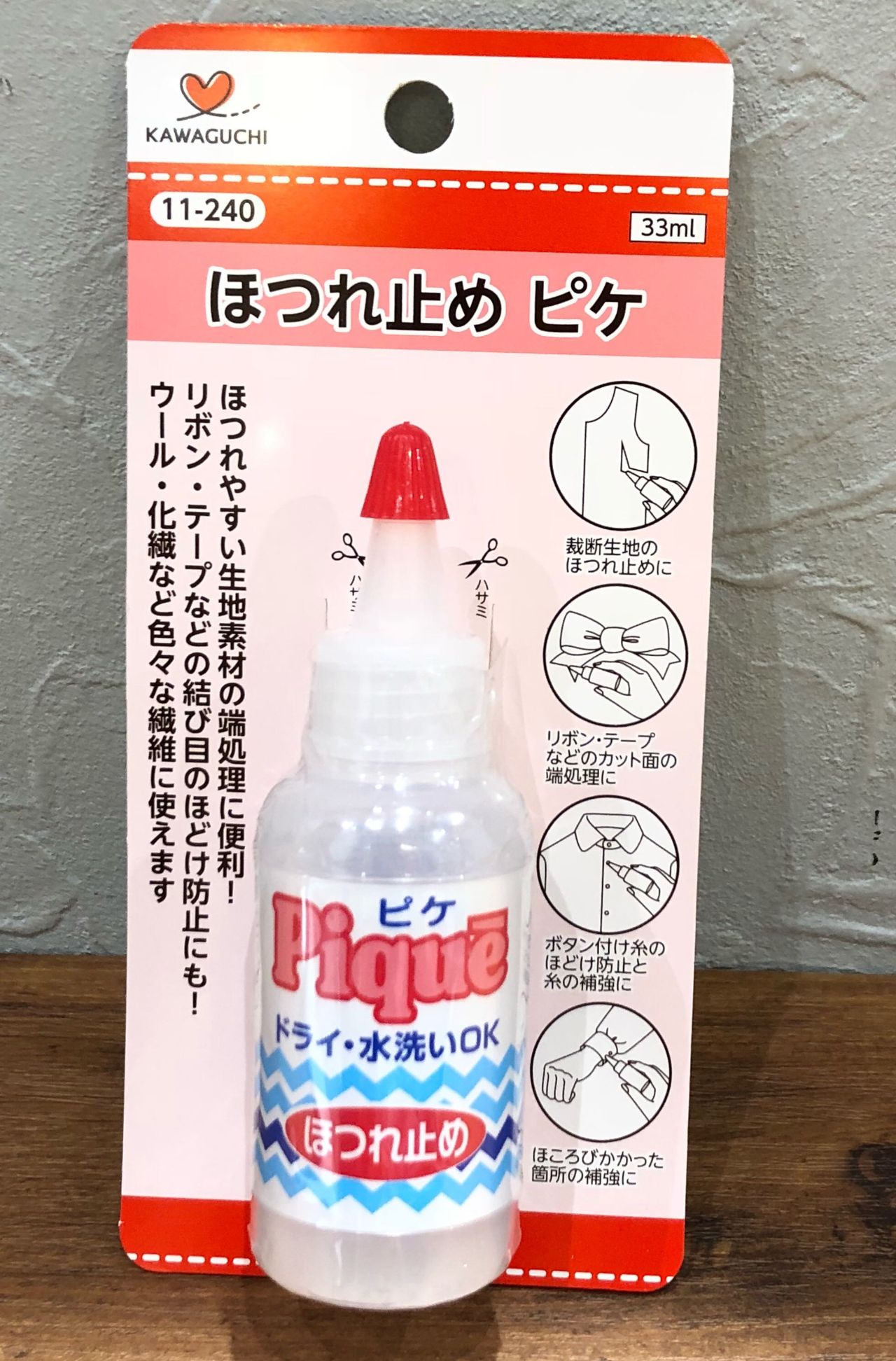 ボンドを薄くつけて止めたり、「ほつれ止めピケ」のご使用をオススメいたします。