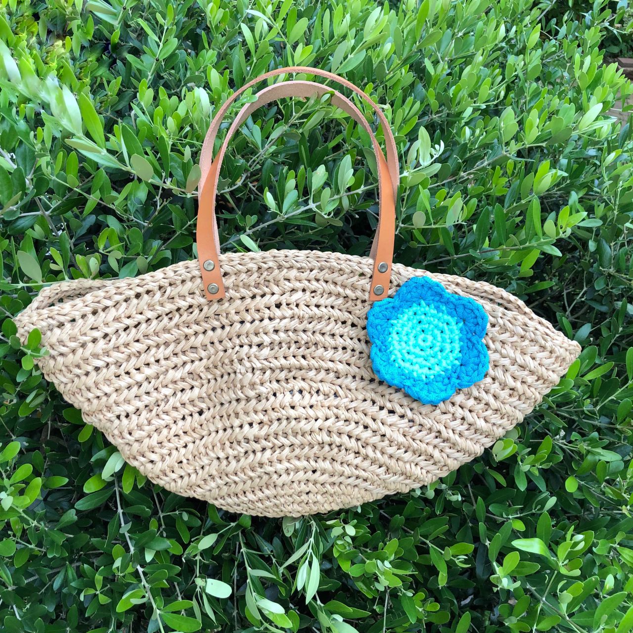 アンダリヤで編んだバックにワンポイントでつけてみました。