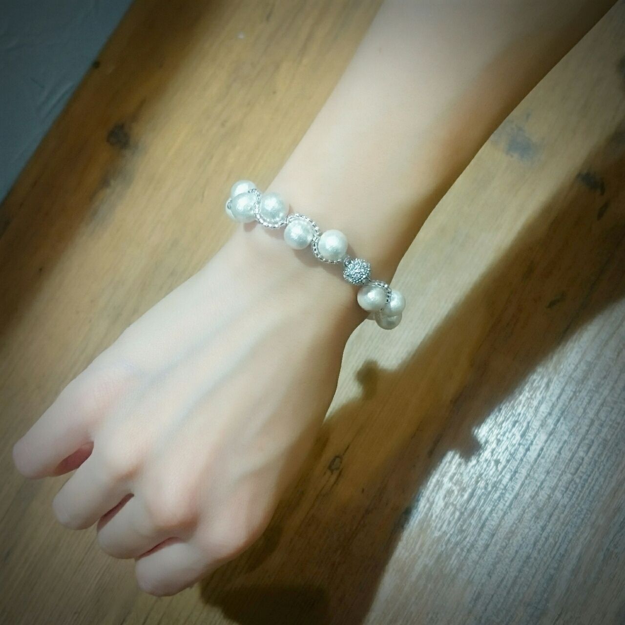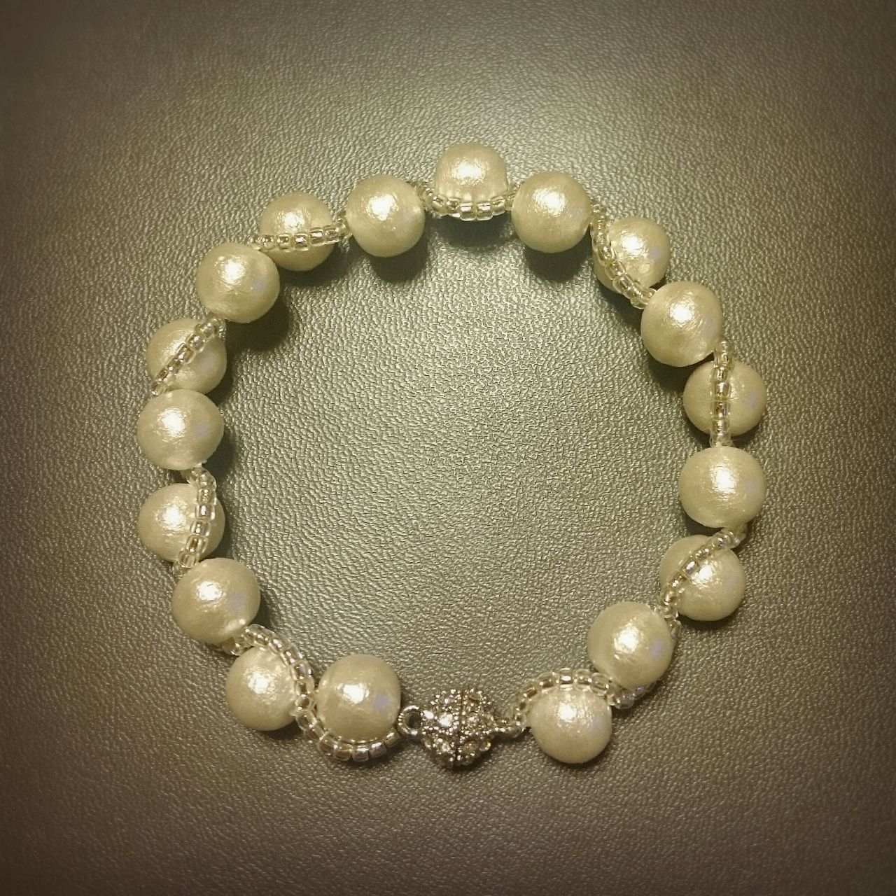 みんな大好き・コットンパールに、ビーズでひと手間プラスしたブレスレットです(*^^*)