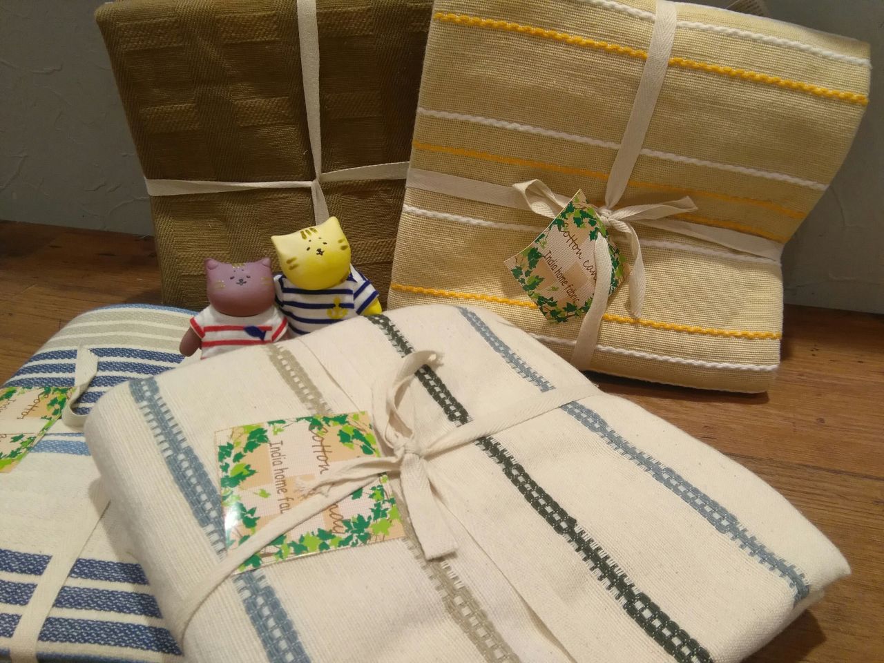 このインド綿は生地が薄めなので、インテリアの敷物は、もちろん、テーブルクロスとかキッチン周りとかにいいかも!