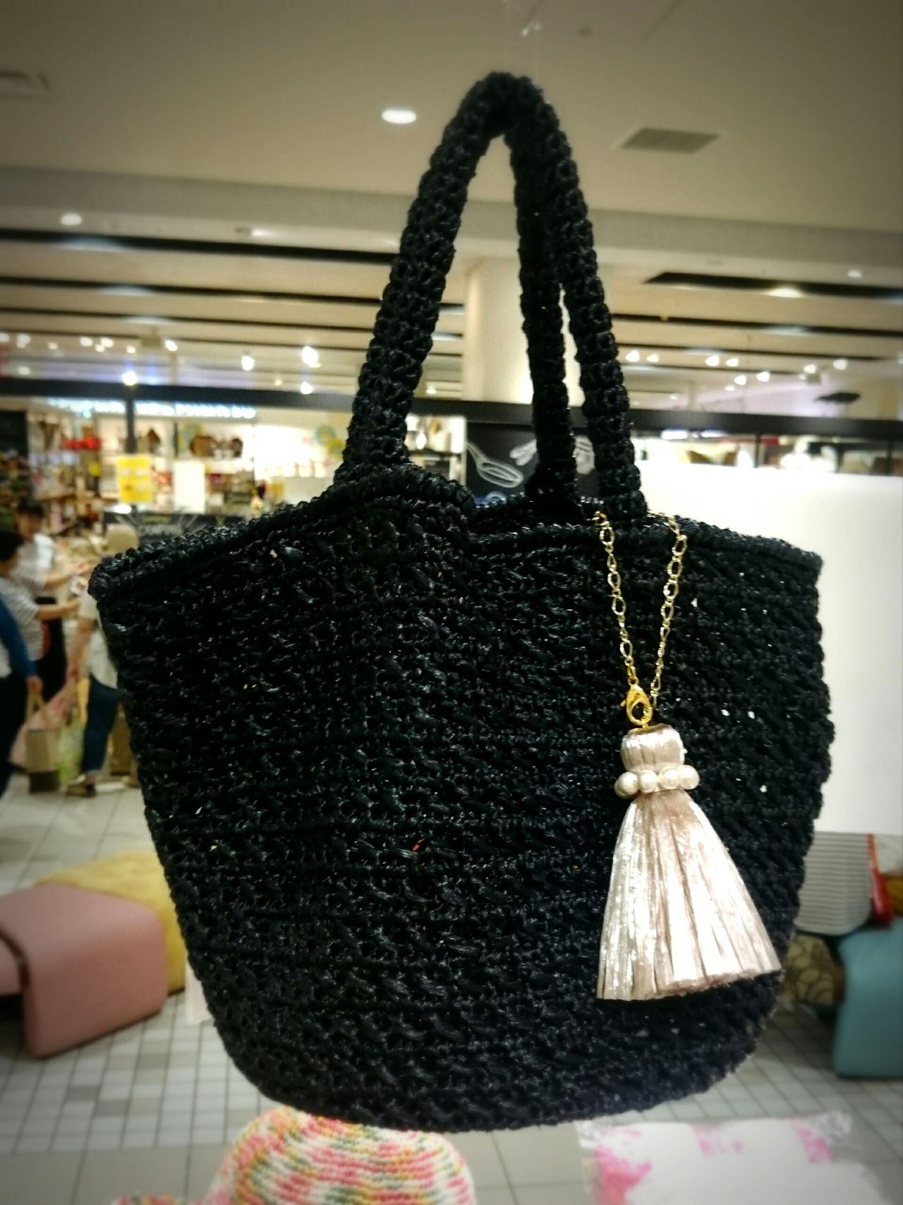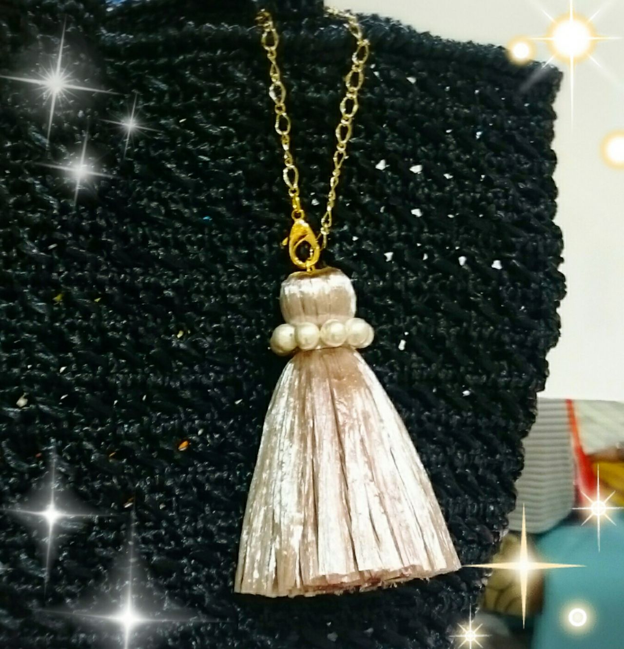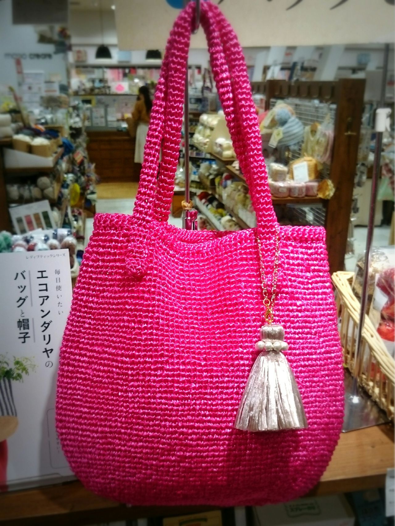 夏糸の代表・エコアンダリヤでバッグを編んだ残りで作れる、タッセルのバッグチャームを作ってみました☆