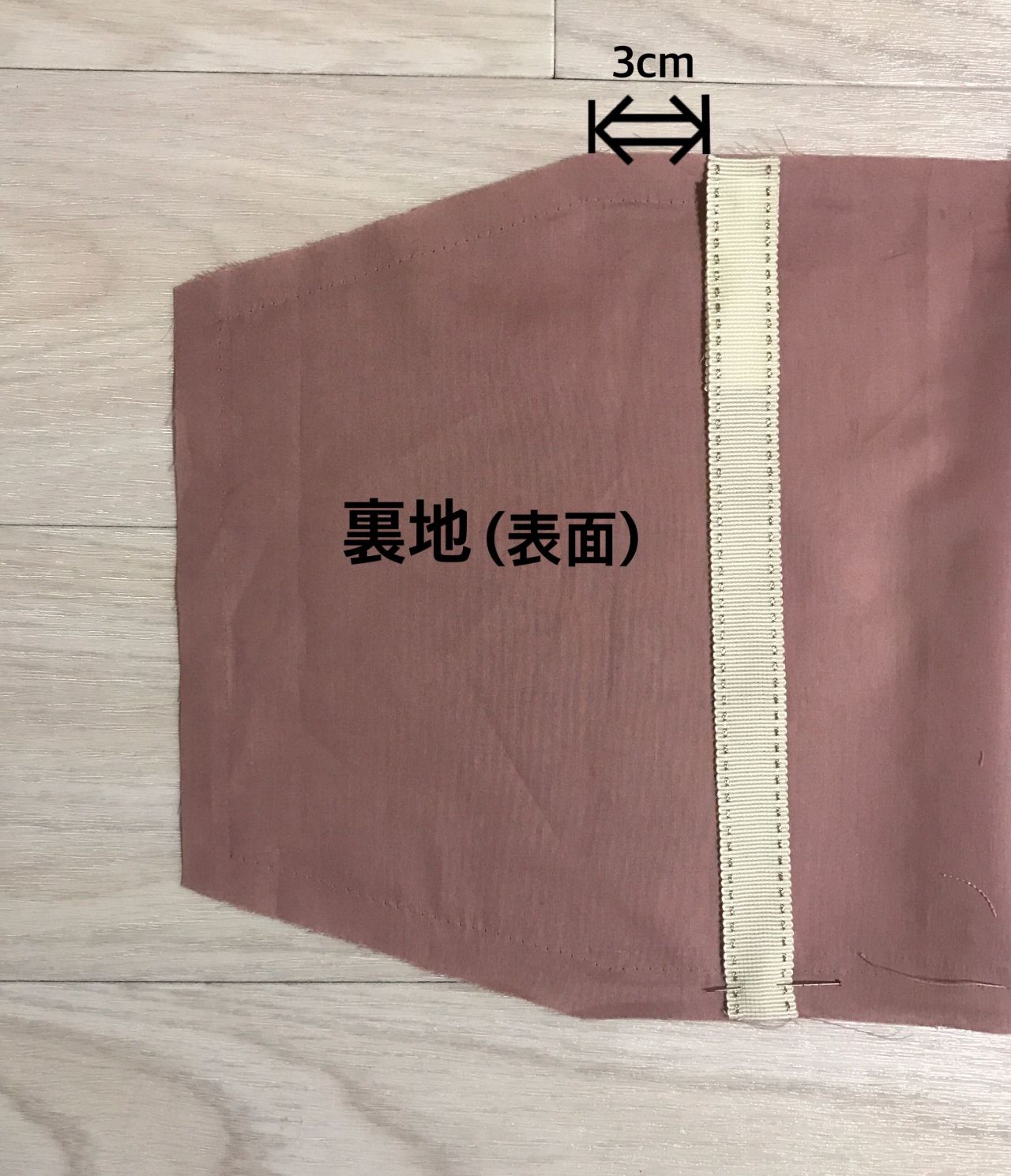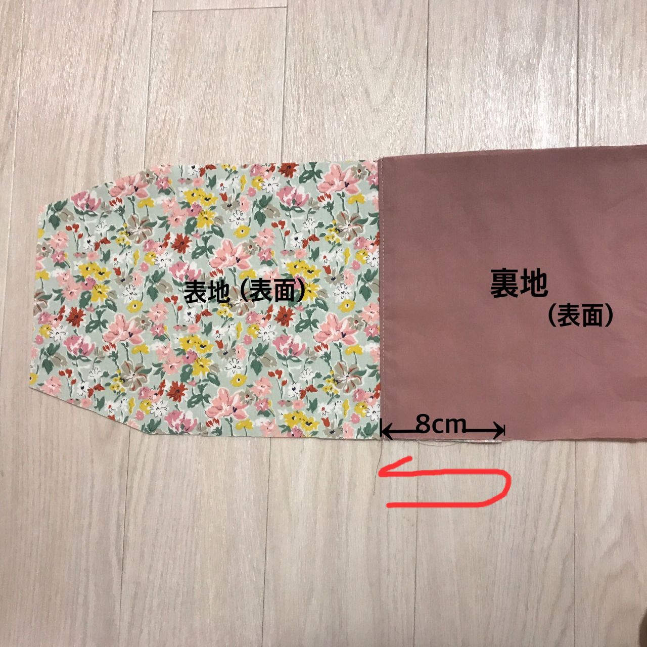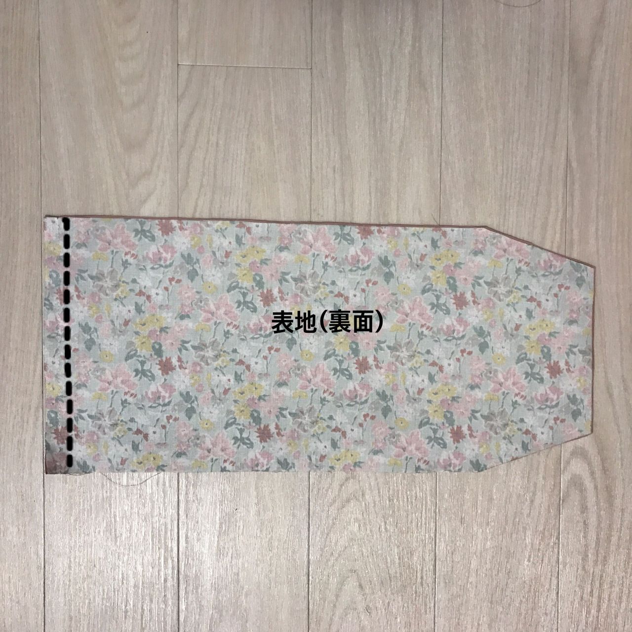 ⑵表地と裏地を中表に合わせて1cmで縫います。