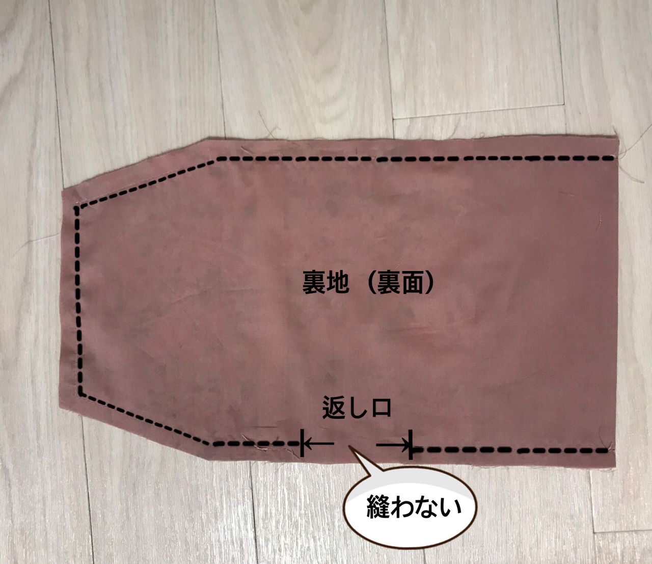 ⑹返し口を5〜6cmあけておき周囲を1cmで縫います。